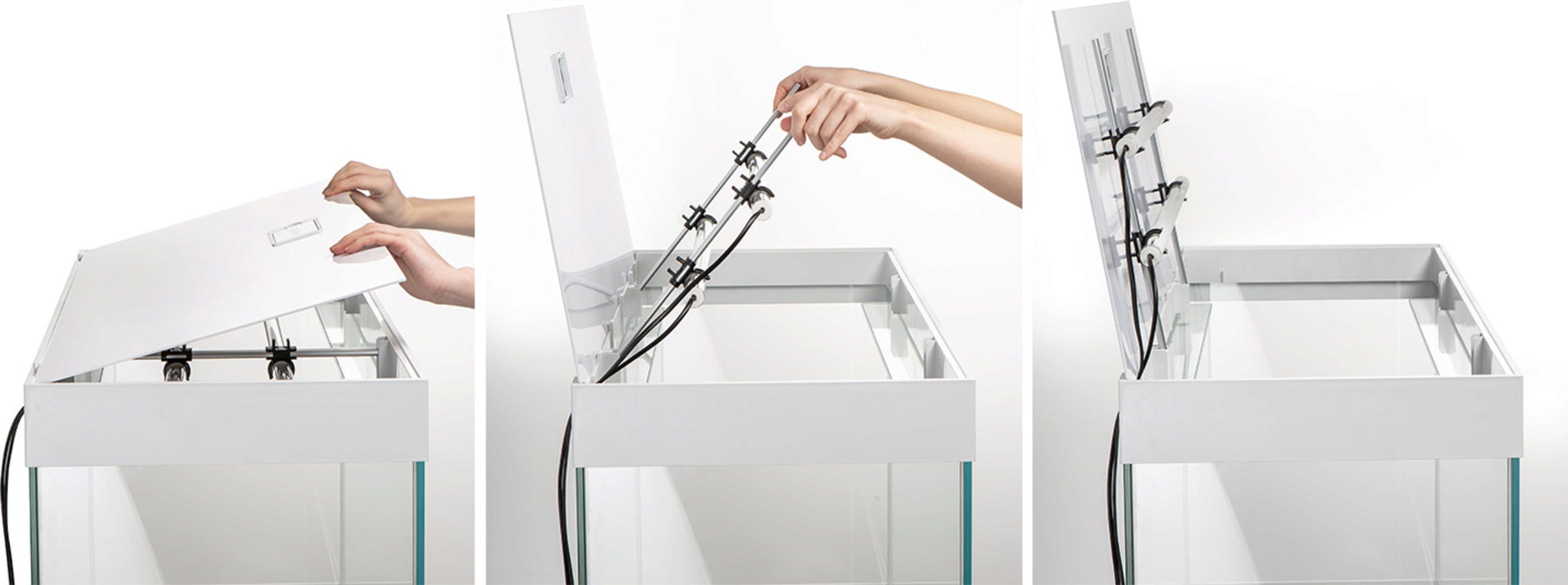 Sistem Smart Open v pokrovu zagotavlja enostavno vzdrževanje. Pokrov in osvetlitev se lahko popolnoma zložita navzgor, in ker akvarij nima prečnih ojačitev, nastane velik dostop do notranjosti akvarija. Še ena prednost: pokrov v odprtem stanju ostane nad akvarijem, tako da kondenzirana voda teče nazaj v akvarij in ne za njega.