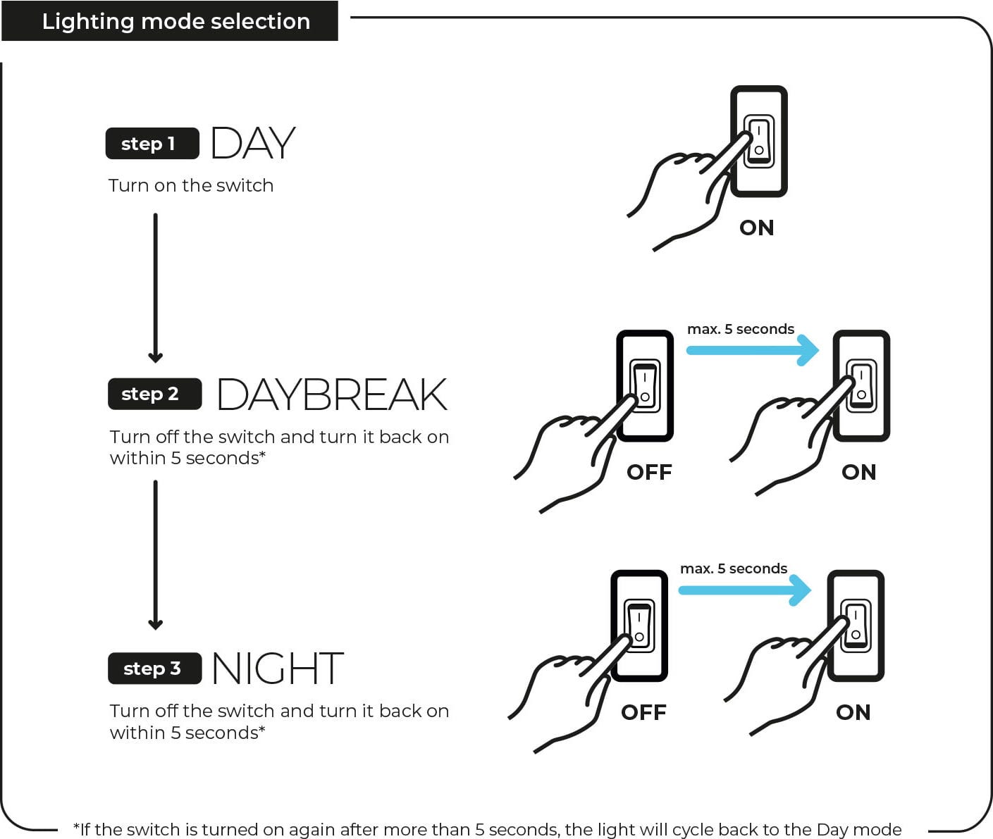 - 3 načini osvetlitve: dan/sončni vzhod/noč