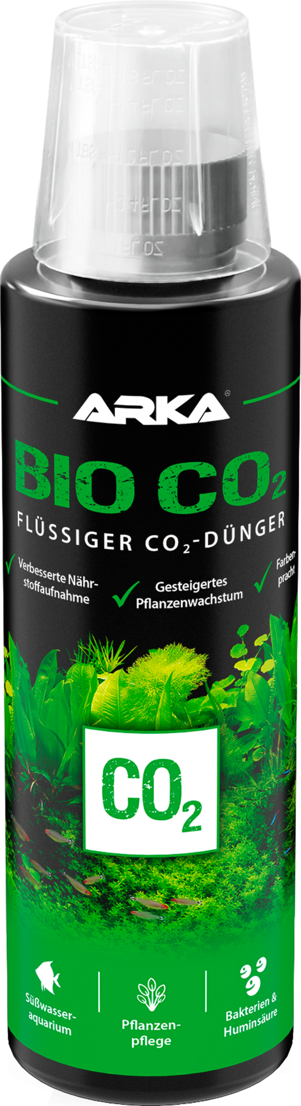 Kot mikrobni vir ogljika Bio-CO2 podpira rast in zdravje rastlin v sladkovodnih akvarijih. Naravna huminska kislina in koristne bakterije pomagajo izboljšati absorpcijo in izrabo pomembnih hranil, kot so rastlinska gnojila. Bio-CO2 spodbuja zdravo in živahno rast vodnih rastlin in zagotavlja intenzivne barve, hkrati pa preprečuje neželeno rast alg.