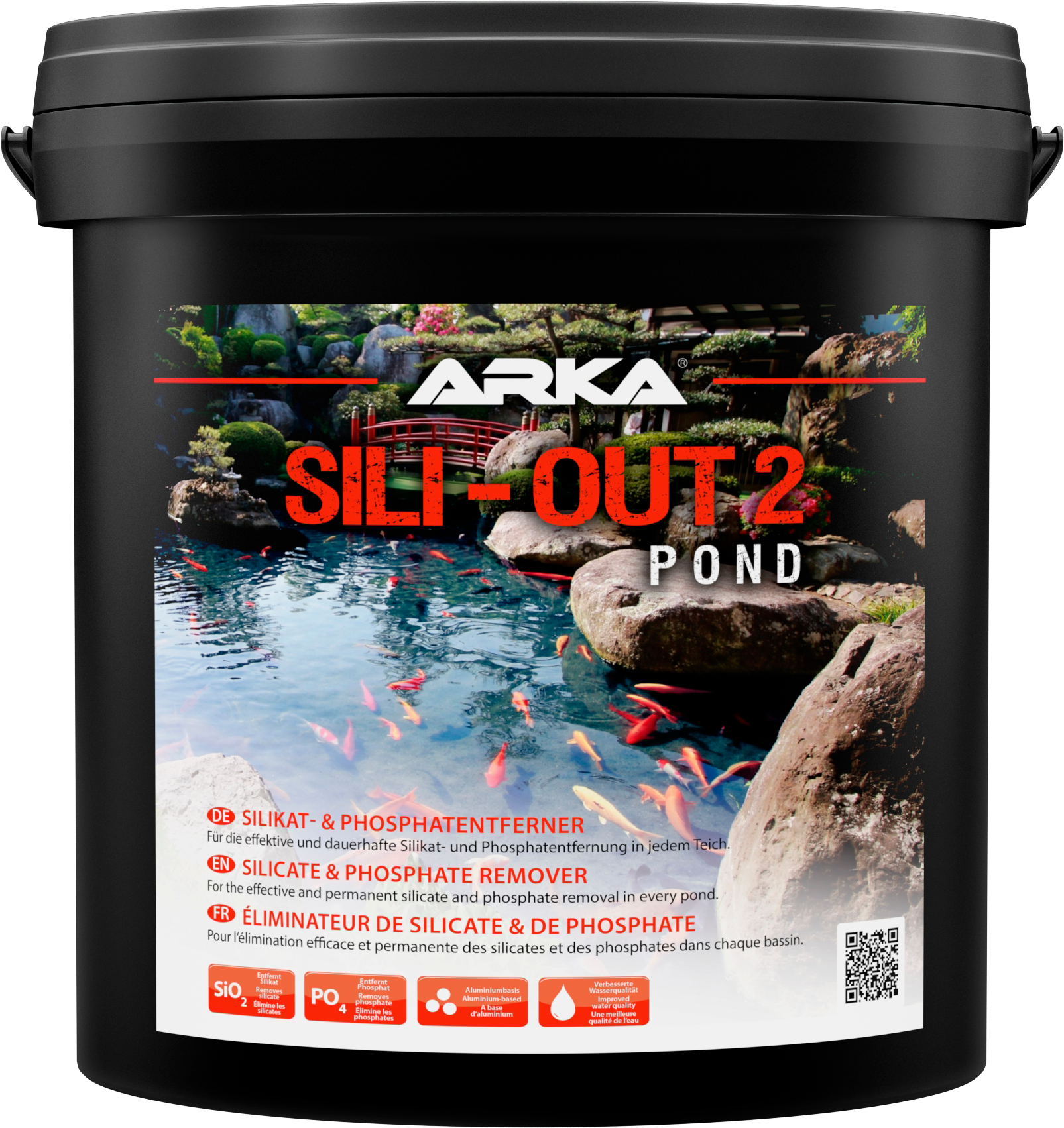 Sili-Out 2 Pond znamke ARKA je izdelek, ki vam pomaga hitro, varno in trajno očistiti osnaževalce v vašem ribniku, kot so silikat, fosfat, barij, arzen, krom in rumene snovi. Hkrati izboljšuje kakovost vode in dolgoročno zagotavlja zdravo okolje za vaše živali v ribniku.