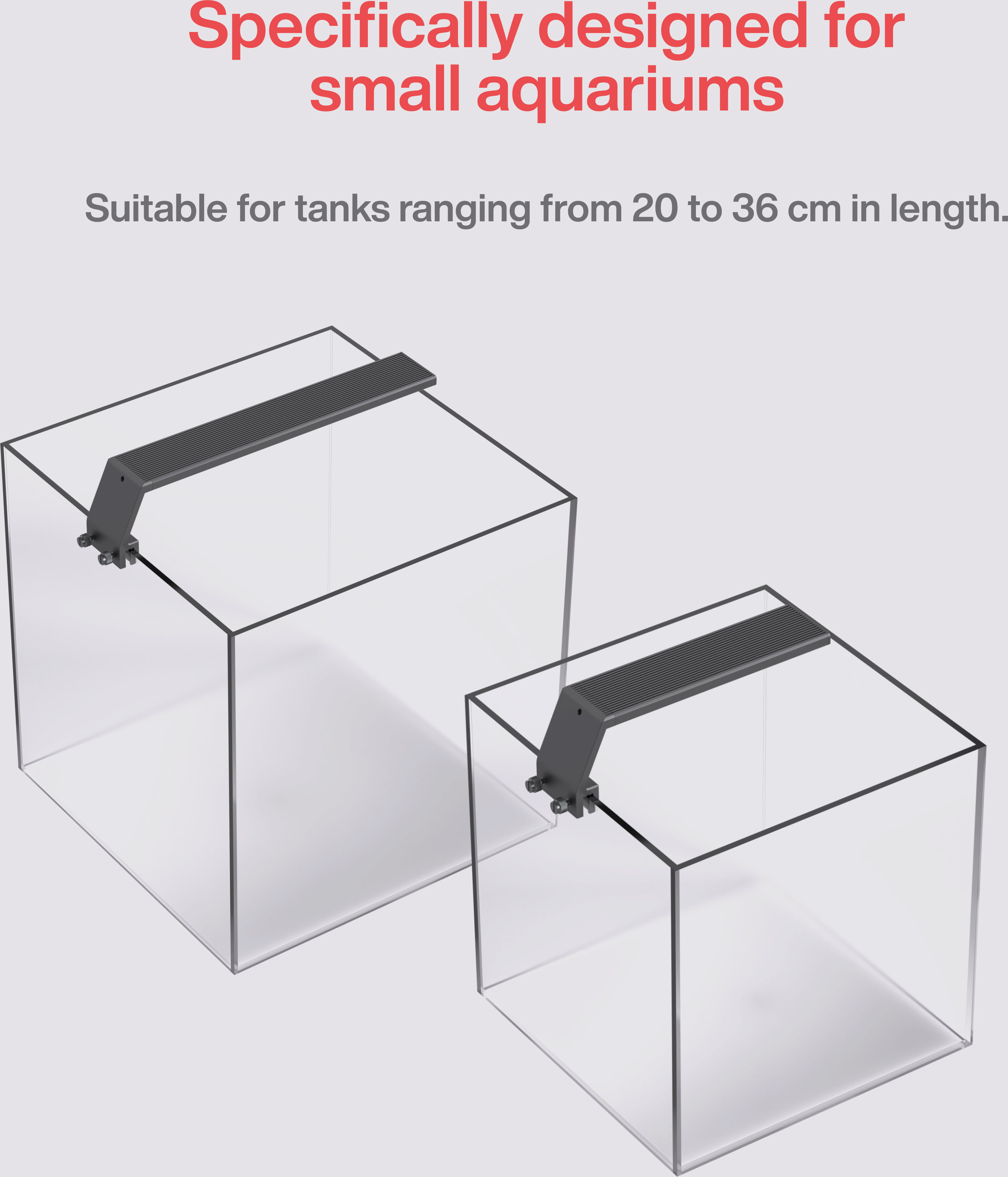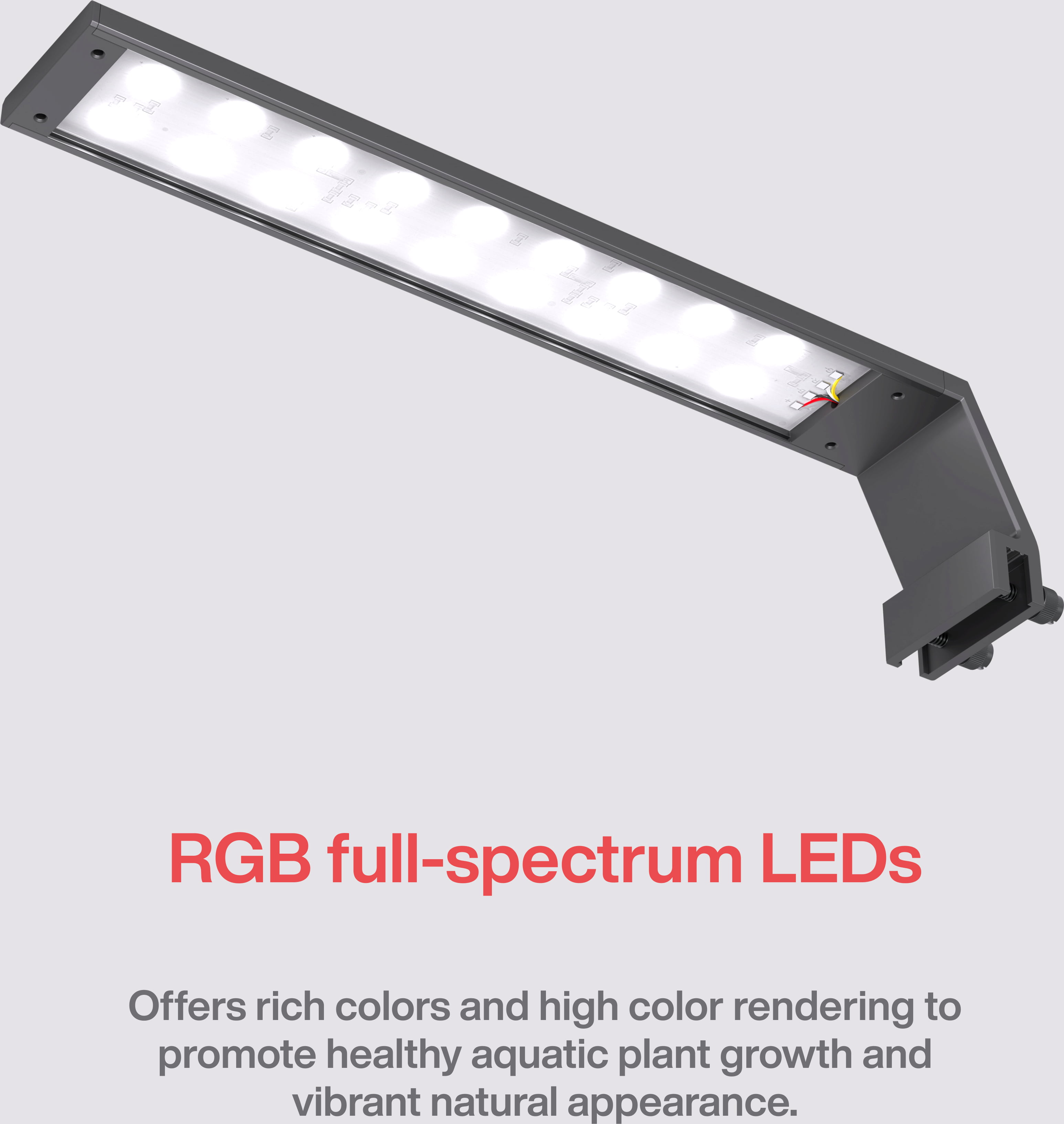 Ta moderna zmogljiva svetilka je bila posebej razvita za nano akvarije in manjše akvarije, kjer se zaradi svoje kompaktne in diskretne zasnove odlično prilega. Ne glede na to, ali izberete 13-vatno različico z impresivnimi 850 lumni ali zmogljivejšo 18-vatno različico s polnimi 1200 lumni, boste vedno dobili visokokakovostno RGB svetlobo polnega spektra. To pomeni intenzivne, žive barve za vaše ribe in kozice ter optimalno raven svetlobe za vaše vodne rastline!