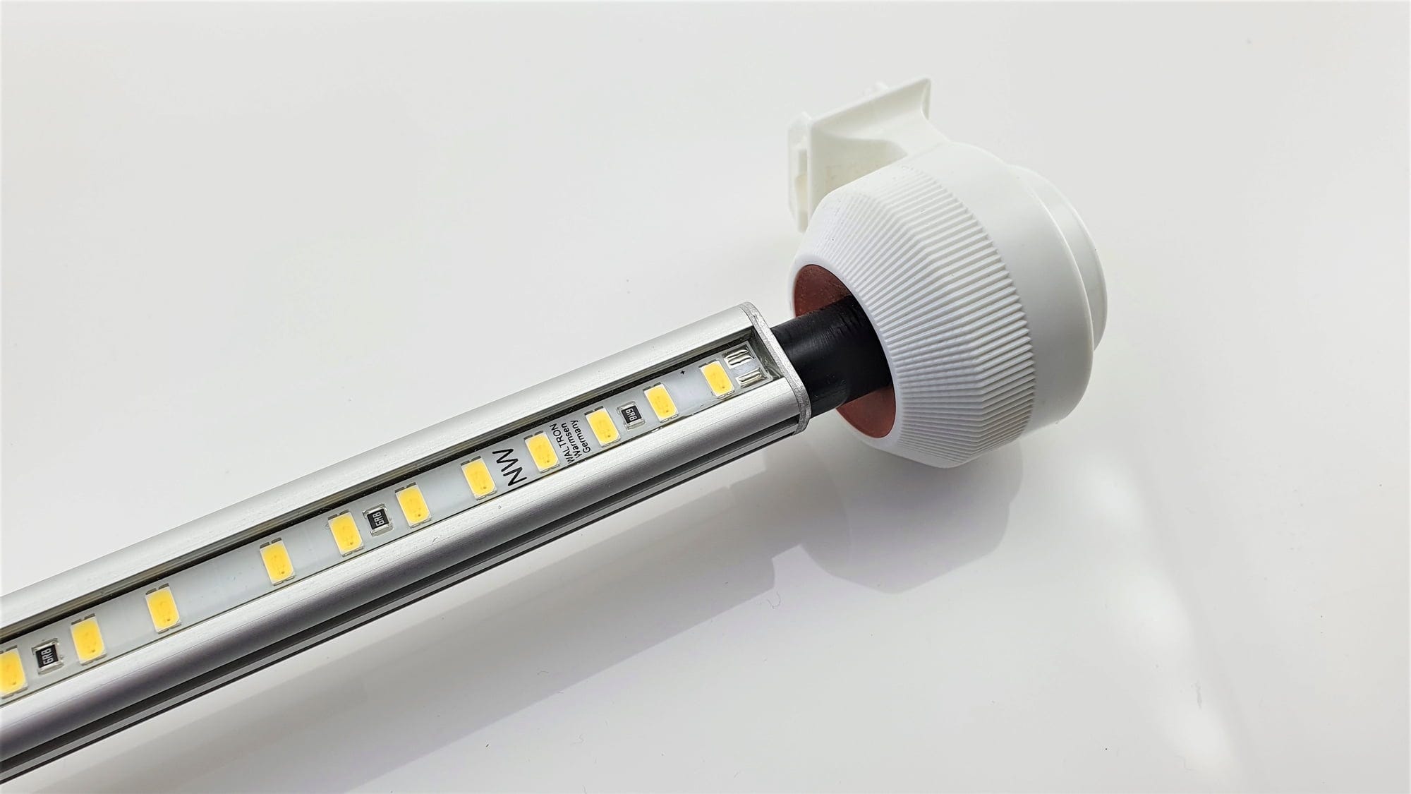 S kompletom adapterjev T5-T8 onex® lahko kombinirate LED svetlobne sisteme onex® z običajnimi svetlobnimi letvami ali pokrovi s fluorescenčnimi cevmi s premerom 16 mm (standard T5) ali 26 mm (standard T8).