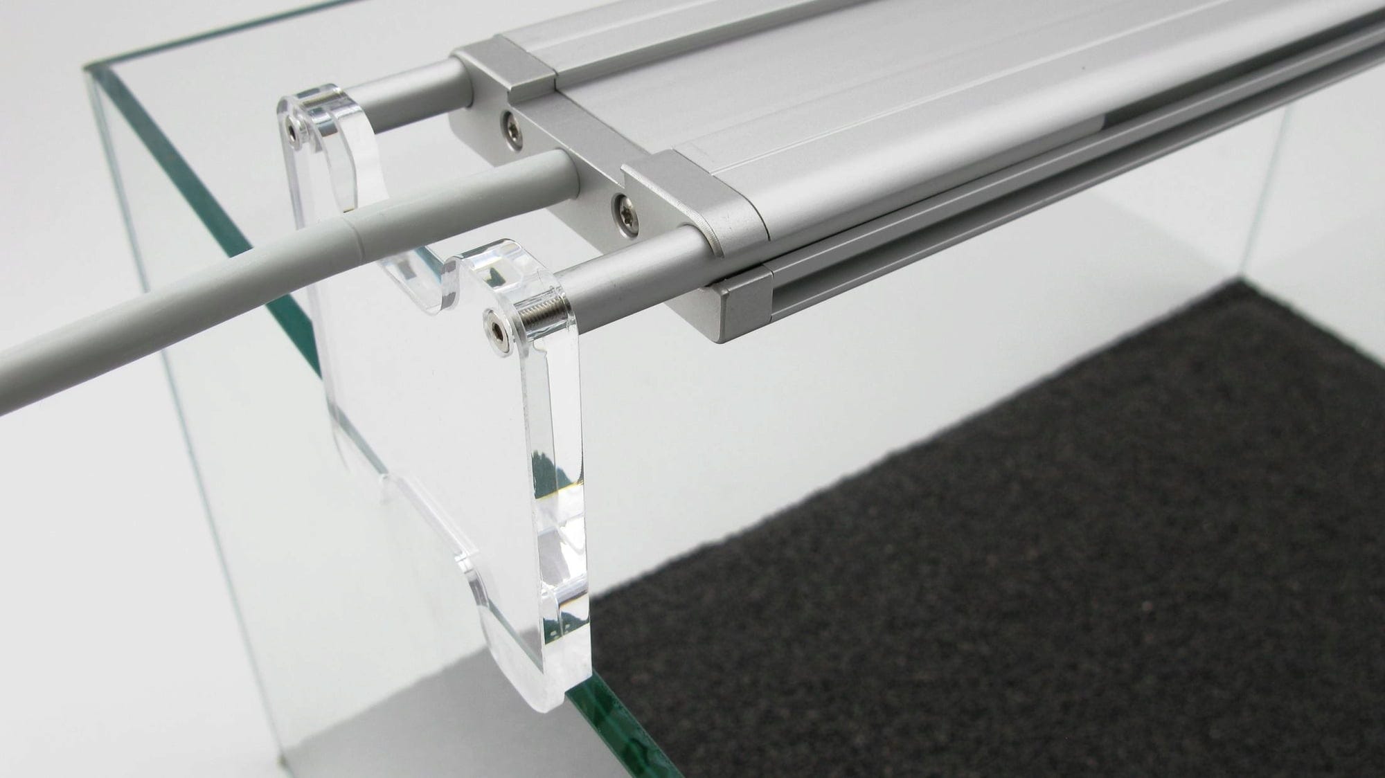 Ne glede na dolžino vašega akvarija lahko adapter pritrdite tako široko, kot ga potrebujete. Pri uporabi kompleta adapterjev se izhod svetlobe LED svetilke matrix nahaja približno 60 mm nad robom akvarija.