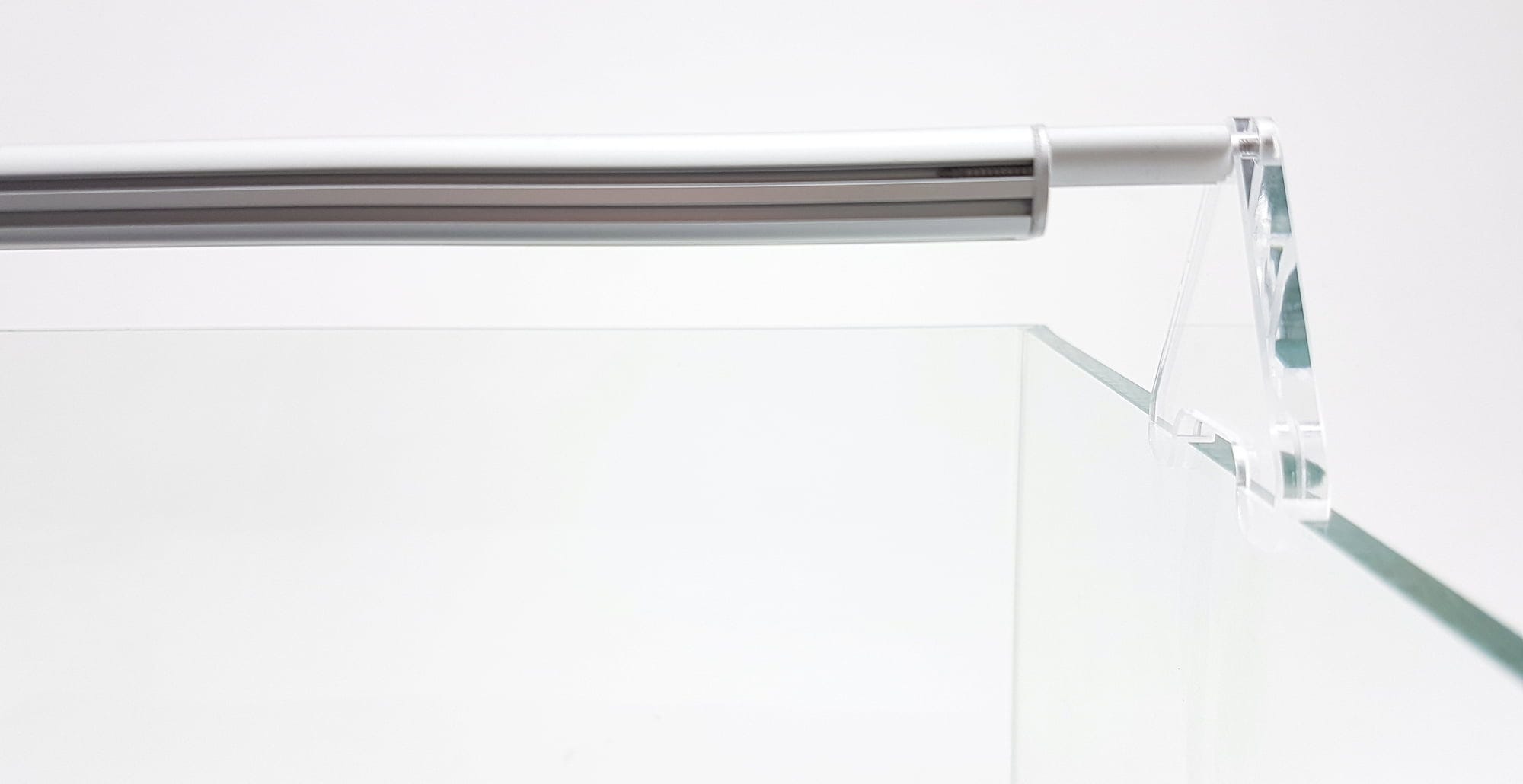 Ne glede na dolžino vašega akvarija lahko adapter pritrdite tako široko, kot ga potrebujete. Pri uporabi kompleta adapterjev se izhod svetlobe LED svetilke onex nahaja približno 30 mm nad robom akvarija.