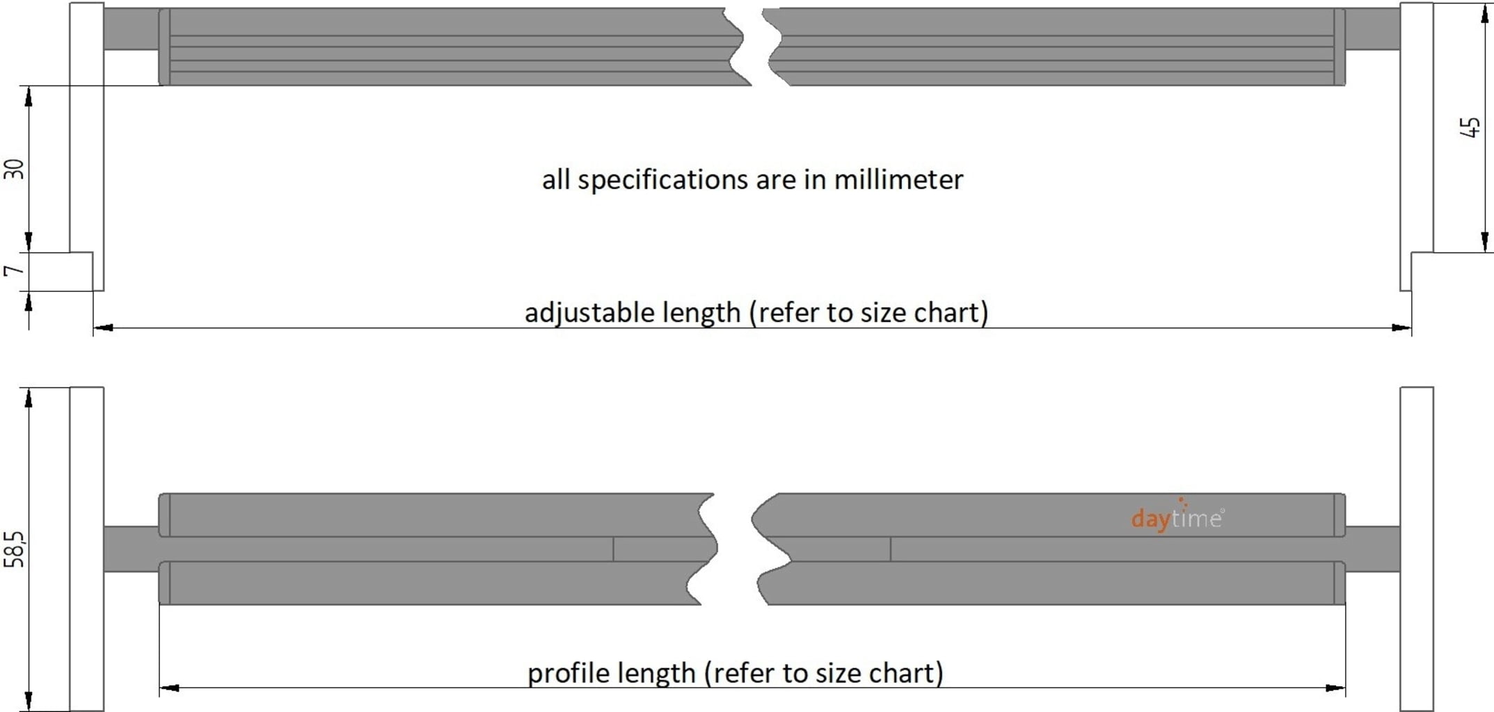 Ne glede na dolžino vašega akvarija lahko adapter pritrdite tako široko, kot ga potrebujete. Pri uporabi kompleta adapterjev se izhod svetlobe LED svetilke onex nahaja približno 30 mm nad robom akvarija.
