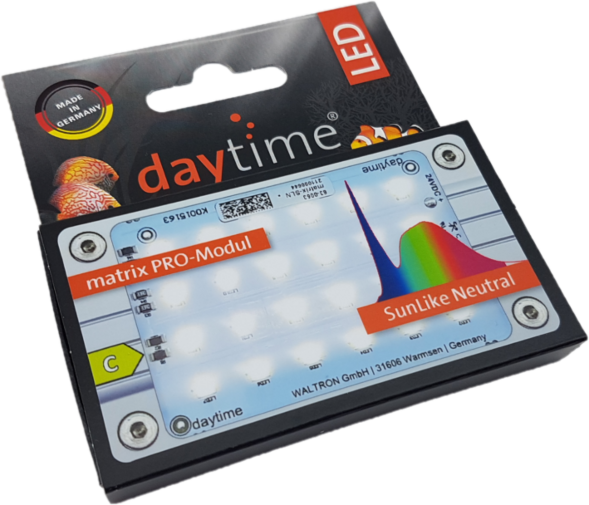 Ta PRO modul znamke daytime LED je bil razvit posebej za osvetlitev sladkovodnih akvarijev. Modul se vgradi v LED sistema matrix in pendix ter zagotavlja nevtralno belo svetlobo polnega spektra.