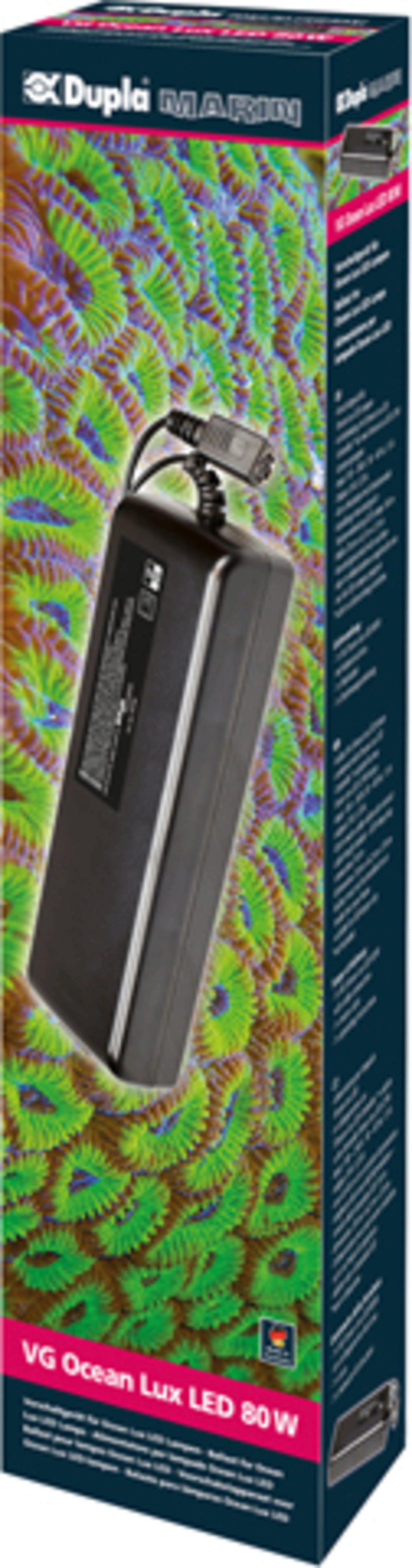 Ta predstikalna naprava je združljiva z LED svetilkami Ocean Lux LEDs 23 W znamke Dupla in vključuje 40 cm dolg napajalni kabel z varnostnim vtičem. Izhodna moč naprave je 80 W.