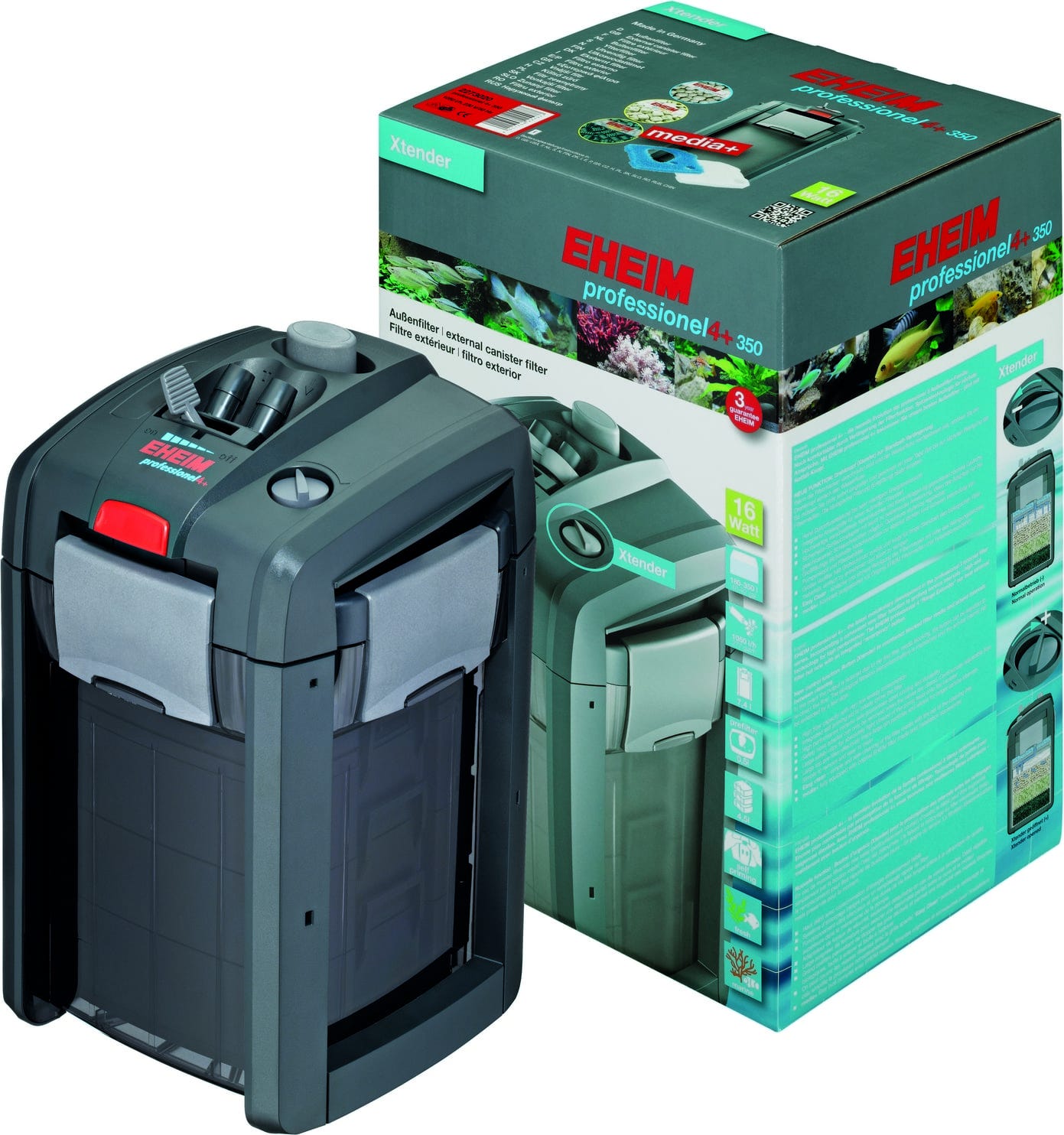 Professionel 4+ je najboljši zunanji filter EHEIM - vključno z gumbom za nujne primere! Močna zmogljivost, optimalna energetska učinkovitost, miren tek, pomoč pri sesanju, adapter za varnostno cev in številne druge prednosti so prevzete iz serije professionel 3. Vrhunec pa je "Xtender": če so filtrirne mase umazane in se pretok vode zmanjša, lahko po potrebi preprosto prilagodite vrtljivi gumb. Tako vam ni treba neposredno posredovati in pridobite nekaj dni do naslednjega čiščenja. Biološka filtracija (razstrupljanje) je še vedno omejeno s preusmerjenim tokom vode. Professionel 4+ ima nov videz tudi glede barv - vsi deli so barvno usklajeni!