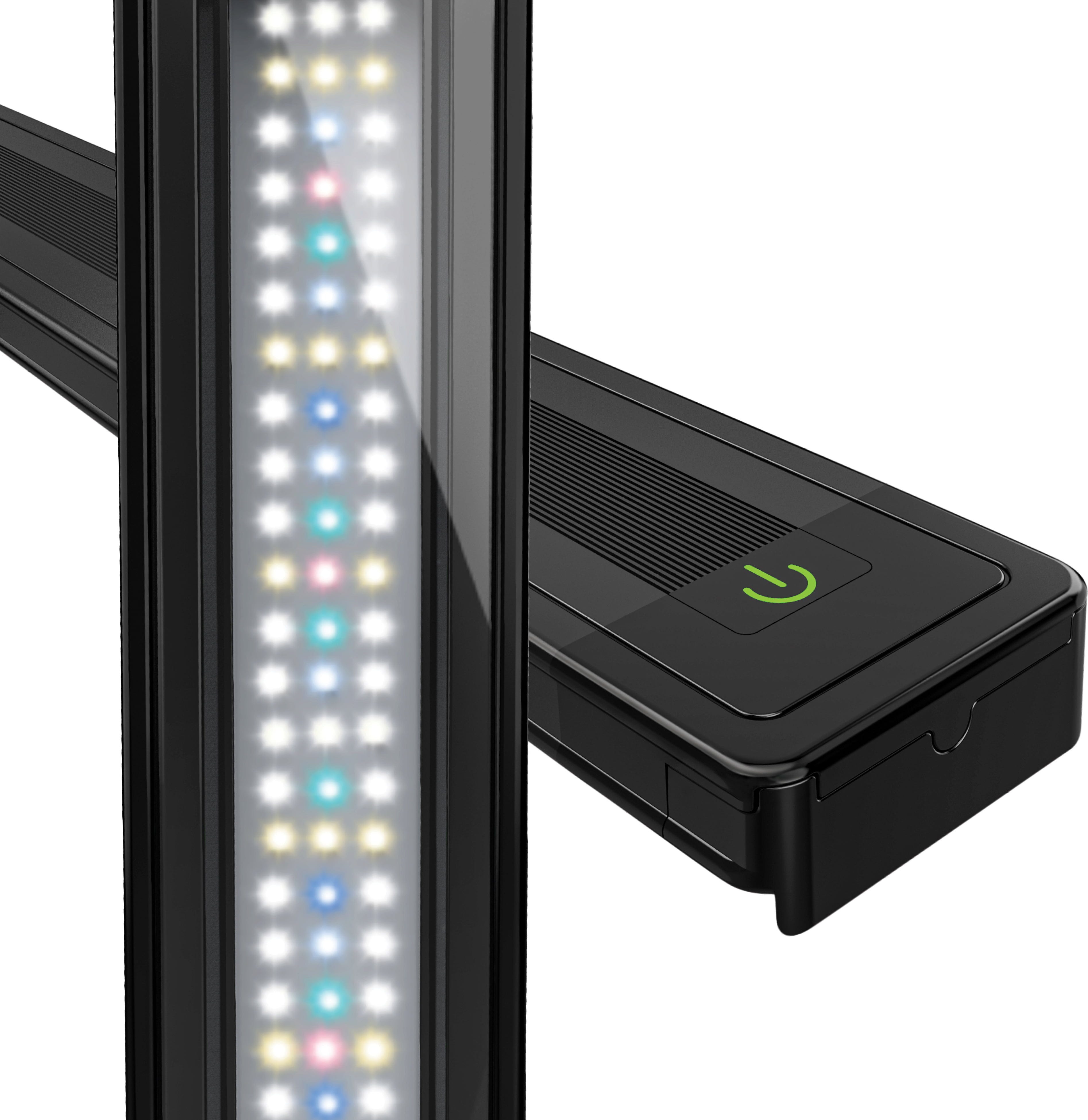 Odličen indeks barvne reprodukcije (CRI) poudari naravno razkošje vaših rib in rastlin, ki bodo videti povsem naravno, medtem ko boste s programirljivimi 24-urnimi cikli popolno posnemali ritme sonca in lune. Svetilka, razvita v Nemčiji, poleg tega prepriča z robustnim aluminijastim ohišjem, ki mu vlaga ne pride do živega, učinkovito odvaja toploto in zagotavlja impresivno dolgo življenjsko dobo. Zahvaljujoč izvlečnemu nosilcu boste svetilko lahko prilagodljivo namestili na svoj sladkovodni akvarij, tako po širini kot po višini.