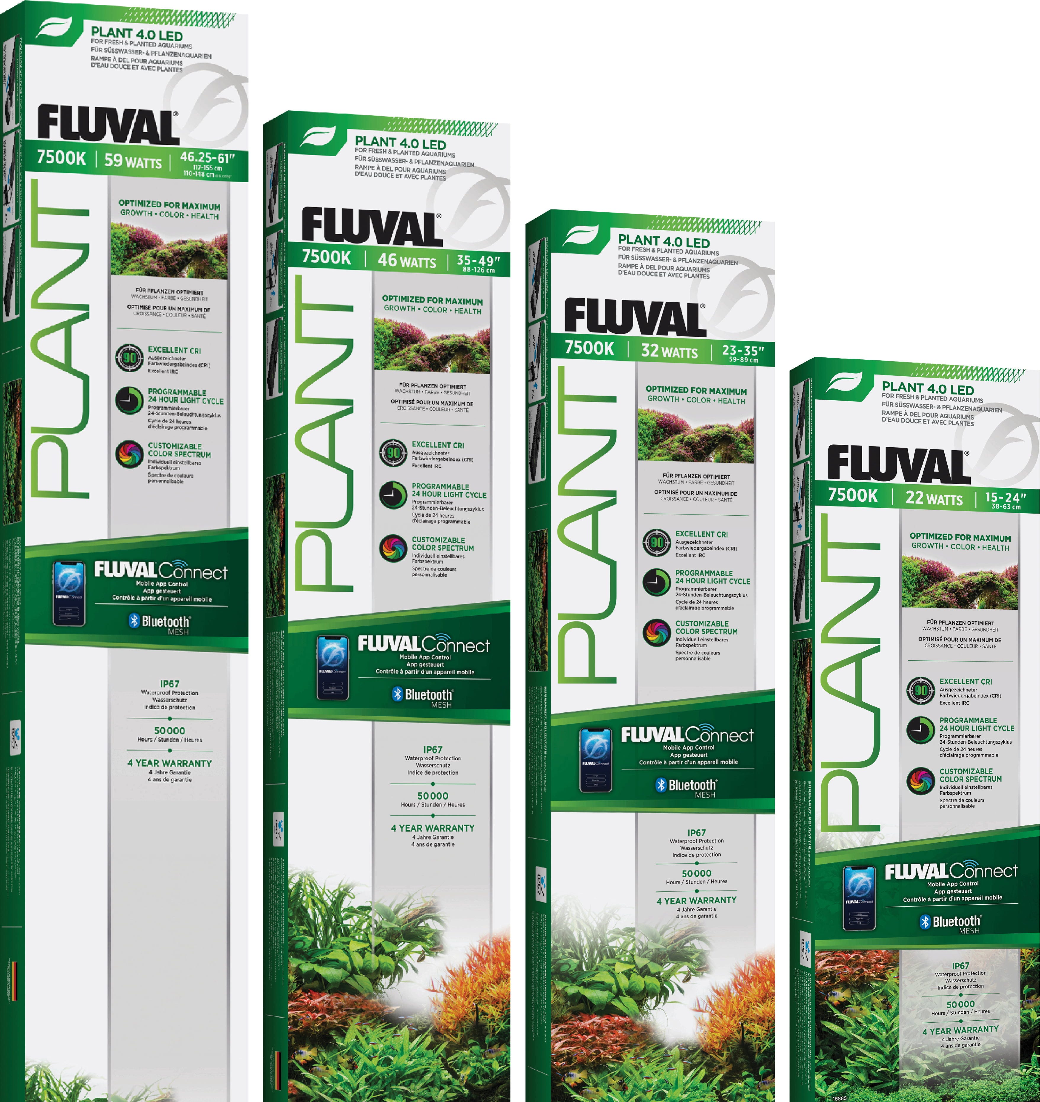 S svetilko Fluval Plant 4.0 LED boste podprli rast svojih vodnih rastlin na popolnoma novi ravni! Prek aplikacije FluvalConnect boste zmogljiv polni spekter udobno upravljali s svojega pametnega telefona in neodvisne barvne kanale natančno prilagodili svojim potrebam. Edinstveni sta dve pod različnimi koti nameščeni LED-plošči, ki zagotavljata maksimalno razpršitev svetlobe in zmanjšujeta senčna območja.