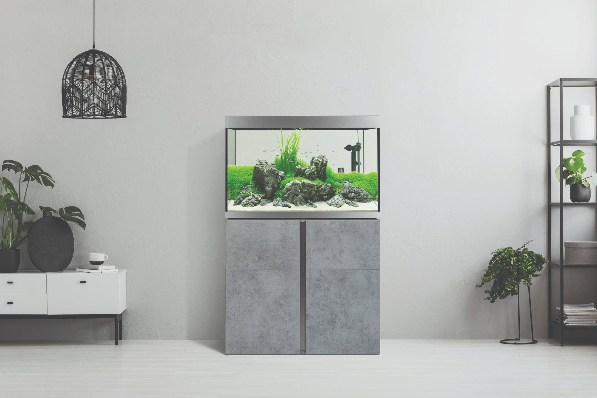 - Visokokakovostne okrasne letve 3M™ vzdolž akvarija ustvarjajo elegantne prehode do pokrova in spodnje omarice – akvarij daje vtis, kot da lebdi nad kosom pohištva