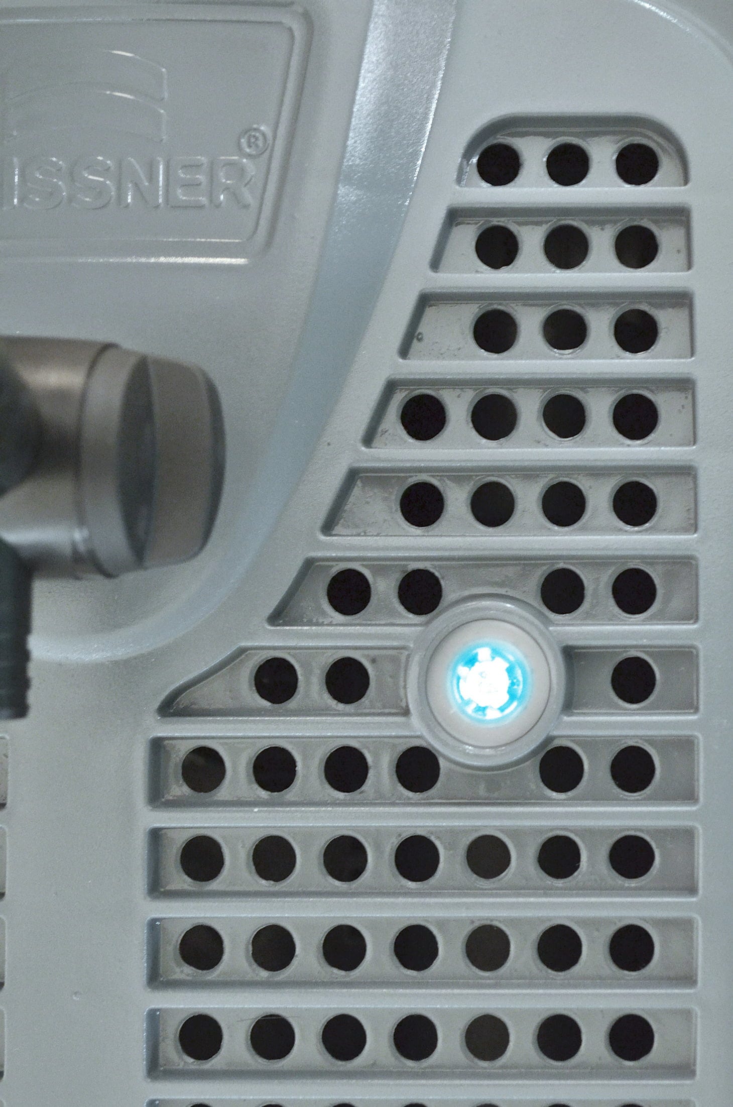 Filtrirni sistem za ribnike HEISSNER Smartline je kompakten sistem »vse v enem«, ki združuje vse bistvene funkcije filtracije v eni sami enoti. Veliko ohišje deluje kot učinkovita mehanska filtrirna stopnja, njegova velika površina pa omogoča še posebej dolge intervale čiščenja. V njegovem jedru je integriran UVC čistilnik, ki učinkovito odstranjuje suspendirane alge in klice. Ker je vsa tehnologija diskretno nameščena na dnu ribnika, ostane naravni videz vašega vrta nemoten.
