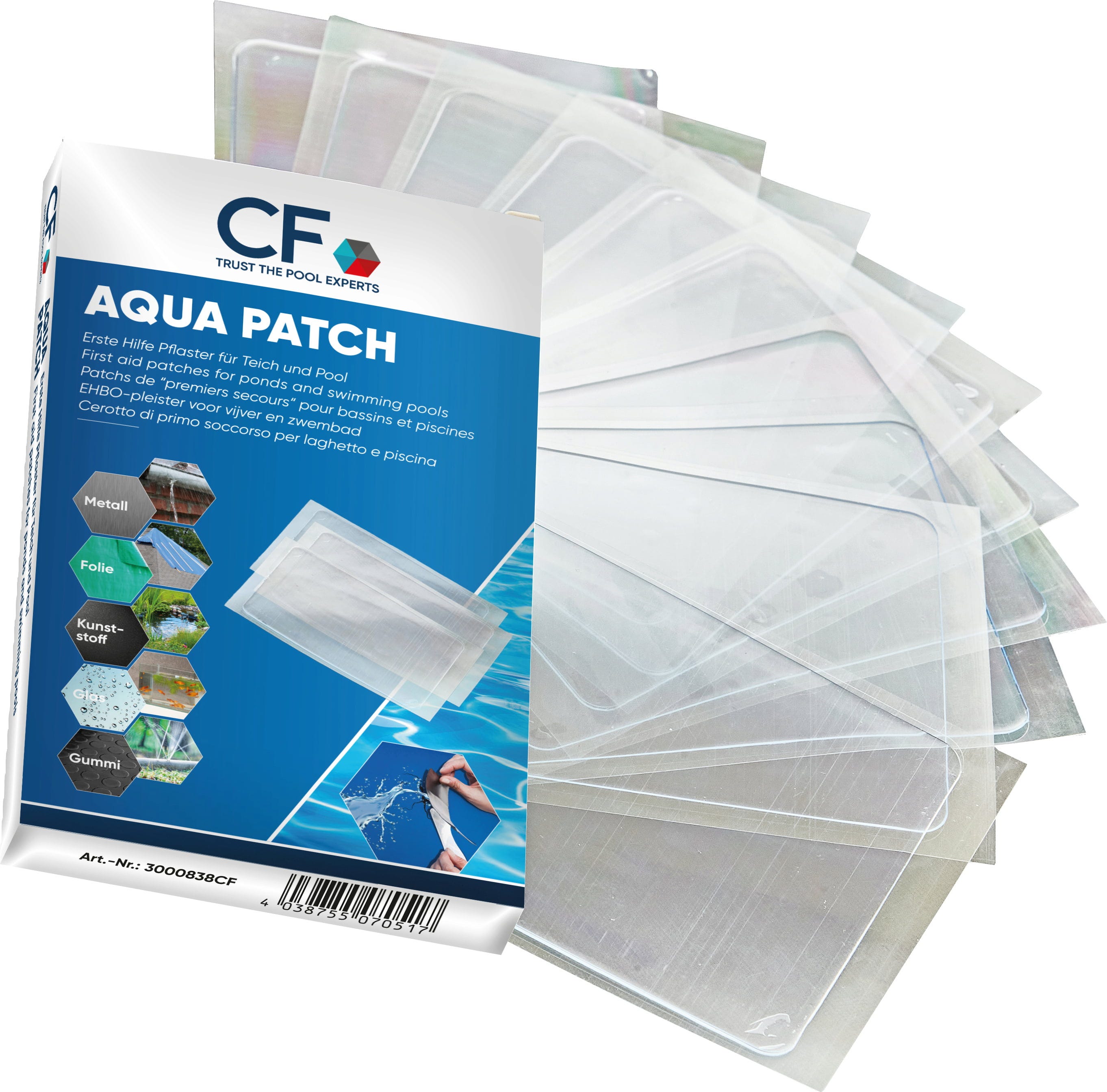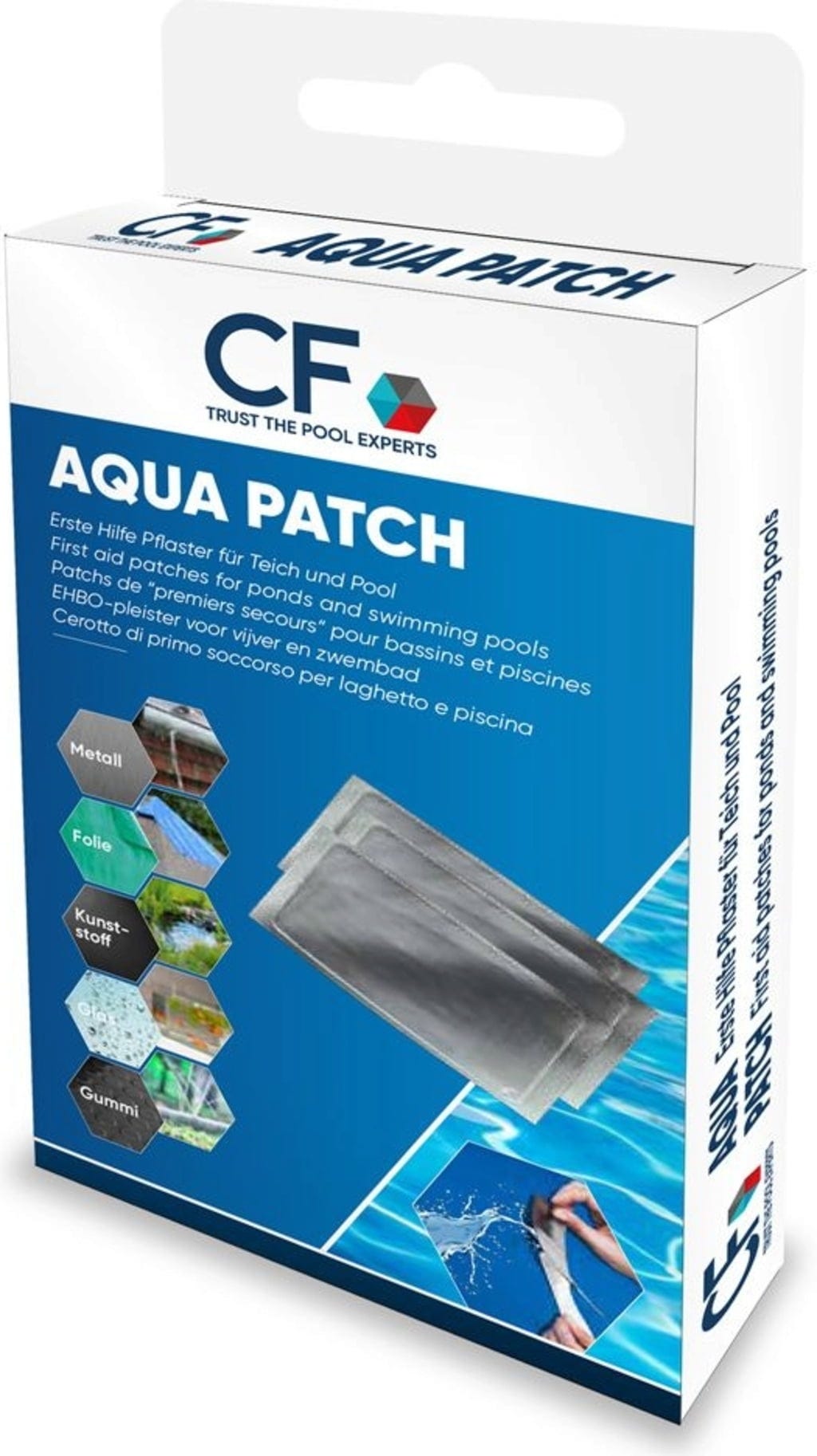 Aqua Patch obliž iz folije za popravilo znamke HEISSNER ponuja učinkovito rešitev za takojšnje tesnjenje lukenj v vodovodnih sistemih. Njegove posebne lastnosti materiala omogočajo nanos neposredno pod gladino vode, s čimer se odpravi potreba po dolgotrajnem praznjenju bazenov ali ribnikov. Blazinice velikosti 10 x 7 cm je mogoče enostavno razrezati na želeno velikost. Takoj se oprimejo najrazličnejših površin, kot so folije, cevi ali plastika. Zaradi enostavne uporabe je komplet stroškovno učinkovita možnost popravila za vse vrtove in prostočasne površine.