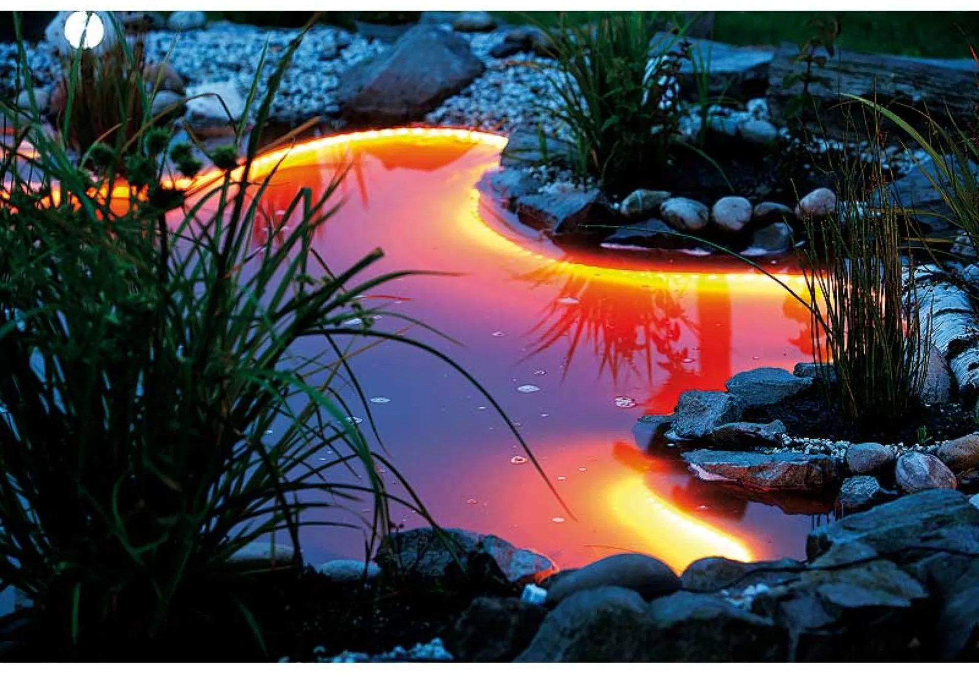Ta pet metrov dolg podvodni RGB LED trak HEISSNER združuje skupno 150 močnih LED diod za osvetlitev ribnikov in zunanjih površin v prilagodljivem barvnem spektru. Zaradi svoje vodoodporne konstrukcije je fleksibilen trak idealen za dekorativno osvetlitev vodnih elementov ali vrtnih struktur.