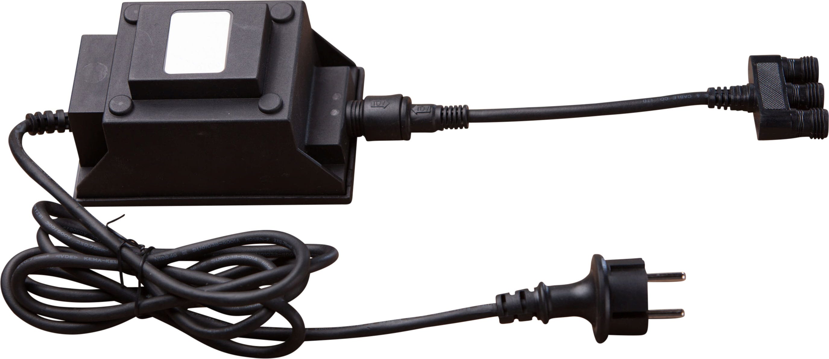 Transformator Smart Light znamke HEISSNER je kompakten in varnostno preizkušen (IP68) varnostni transformator za svetlobne sisteme SMART LIGHT na prostem ali pod vodo. Omrežno napetost pretvori v varno 12-voltno nizko napetost in priključene porabnike do skupne moči 105 W konstantno oskrbuje z električno energijo. Zahvaljujoč preprostemu vtičnemu sistemu serije SMART LIGHT lahko združljive svetilke, krmilnike in zatemnilnike priključite povsem enostavno, po potrebi pa jih prek zunanjih pametnih modulov integrirate tudi v upravljanje prek aplikacije.