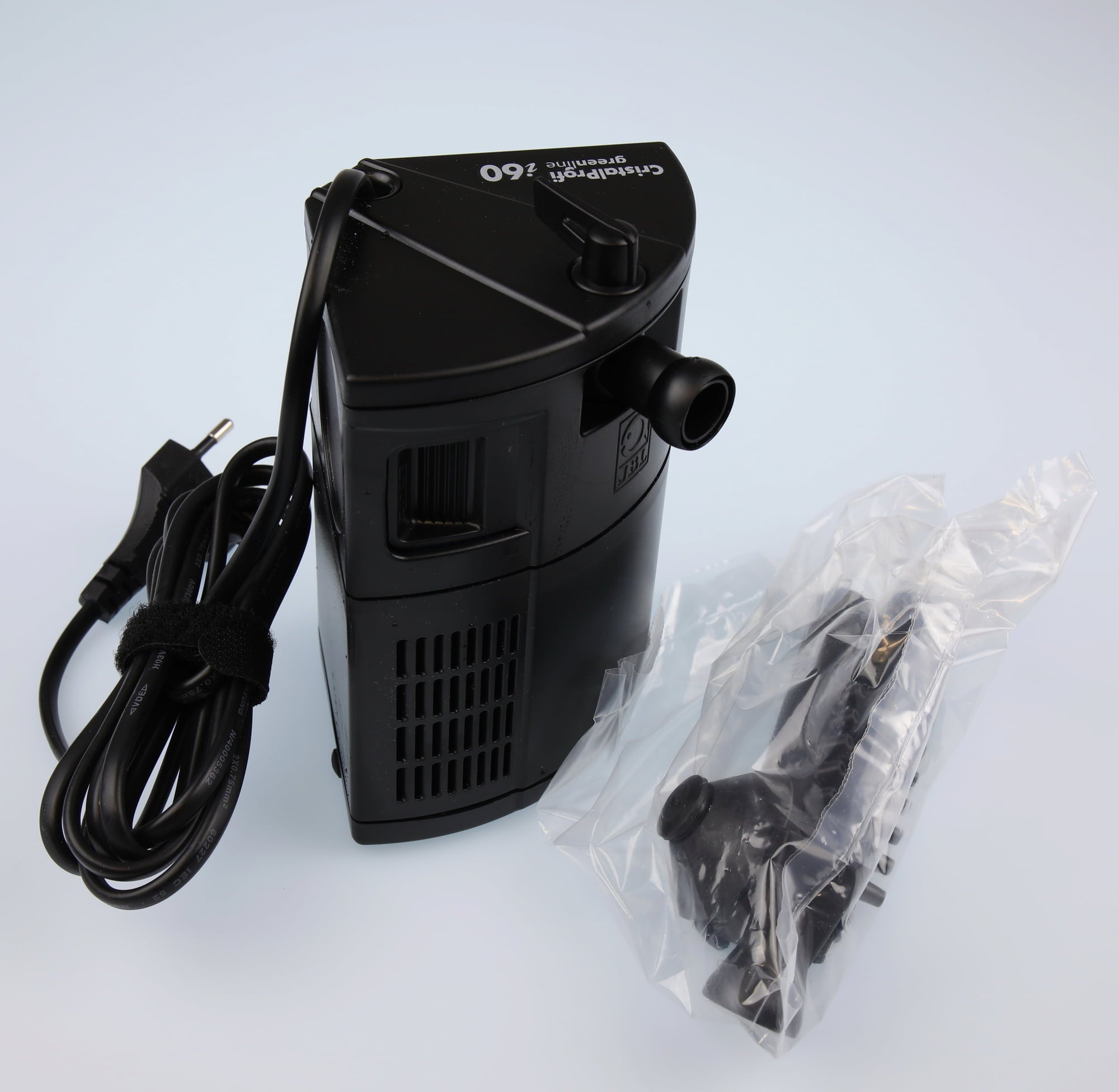 Notranji filter je popolnoma pripravljen za priključitev in opremljen s filtrirnim medijem. Filter priključite na široko šobo ali cev za curek. Namestite filter v akvarij in priključite napajalni vtič. Pri praznjenju filtra v akvarij ne pride umazana voda. Uporabne so vse filtrirne mase. CristalProfi ima elegantno kotno obliko.