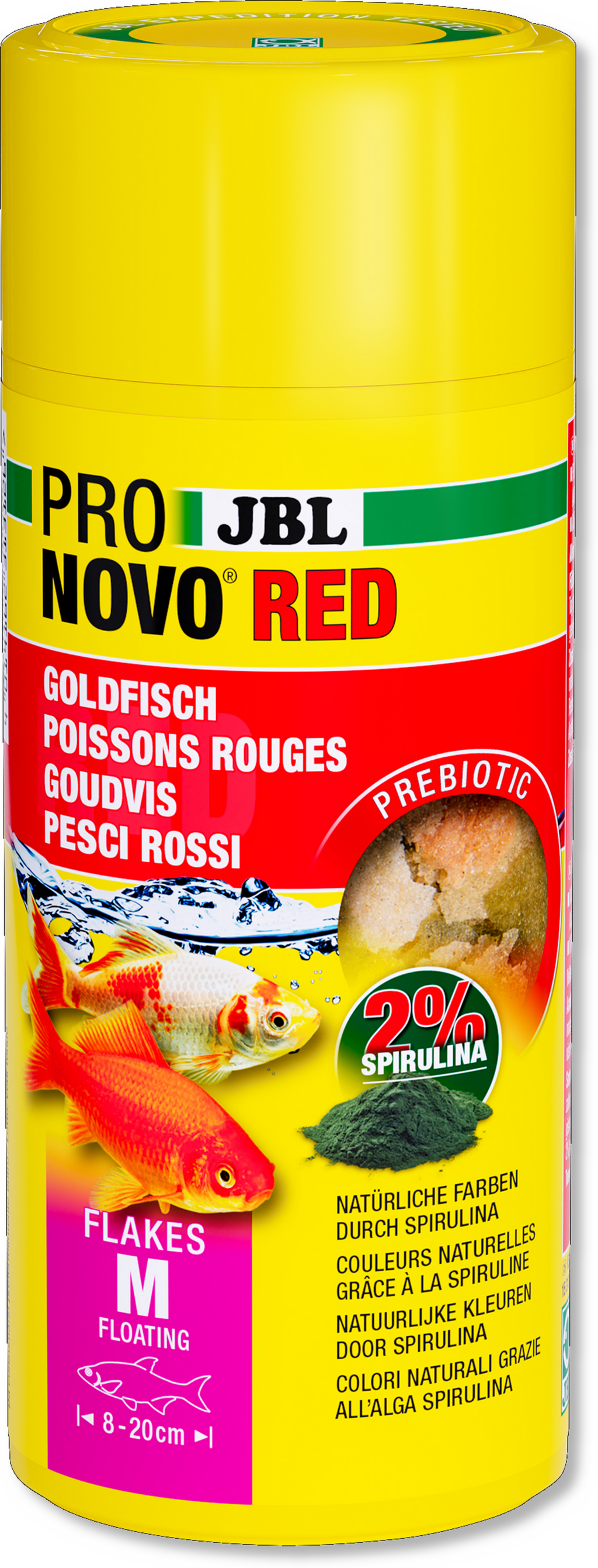 Pronovo Red Flakes M je osnovna hrana v obliki rdečih, lebdečih kosmičev, ki srednje velikim zlatim ribicam (8-20 cm) zagotavljajo dragocene in naravne sestavine. Zaradi uravnotežene recepture rastlinskih in živalskih surovin je hrana priljubljena tako pri rejcih kot pri vsejedih zlatih ribicah! Medtem ko kril in spirulina zagotavljata naravni astaksantin, kozice, losos in lignji zagotavljajo okusno hrano, primerno vrsti. Krma vsebuje posebne prehranske vlaknine, ki podpirajo prebavo majhnih rib in tako zagotavljajo uravnoteženo prehrano. Okusno hrano, ki ne vsebuje nobenih umetnih dodatkov, z veseljem pojedo tudi izbirčne ribe!