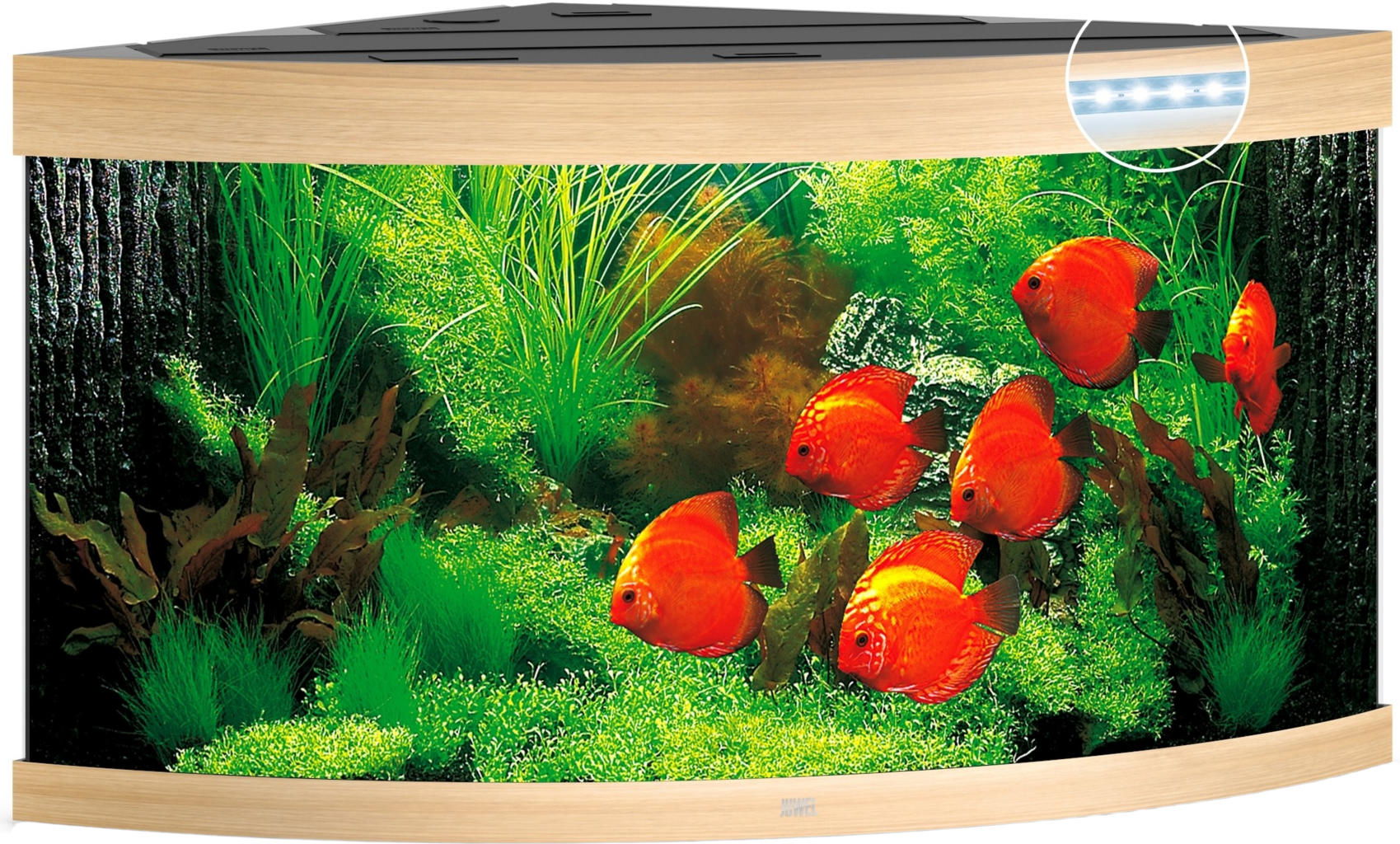 Juwel TRIGON 350 LED je odlično uprizorjen: zahvaljujoč globinskemu učinku v impresivni obliki se TRIGON 350 LED harmonično zlije v vsak kotiček prostora in ustvari zatočišče miru za vas in vso vašo družino! S svojo posebno globino 87 cm in ukrivljeno sprednjo šipo v vsakem kotu ter opremo s štirimi fluorescenčnimi cevmi TRIGON 350 LED sije in ponuja celo dom velikim ribam in morskim bitjem.