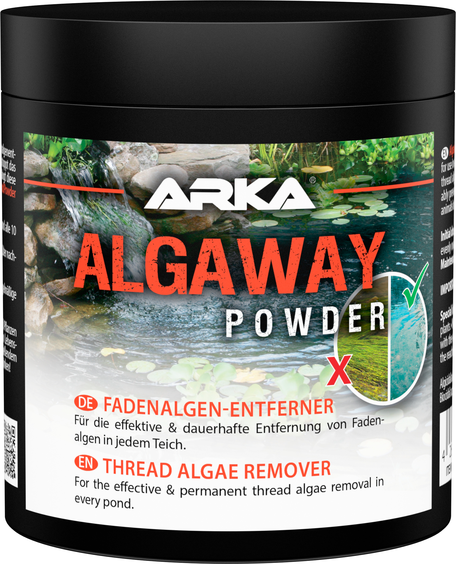 Praktični Algaway Powder podjetja Microbe-Lift je inovativen odstranjevalec alg, ki se lahko uporablja v vseh ribnikih! Je še posebej hiter in učinkovit, saj z odstranjevanjem hranilnih snovi iz alg zaustavi rast obstoječih nitastih alg. Alge so potisnjene nazaj, njihov nov nastanek pa je trajno preprečen.