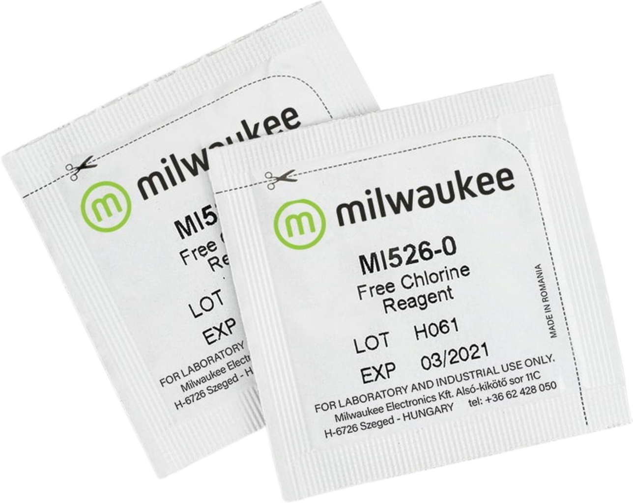 Reagent v prahu za prosti klor MI526-25 je sestavljen iz visokokakovostnih reagentov za fotometer za prosti klor MW10 znamke Milwaukee. Tako reagent kot merilnik uporabljata prilagoditev metode DPD. Pri tem reakcija med klorom in reagentom povzroči, da se vzorec obarva rožnato. V ta namen dodajte reagent v vzorec in počakajte na reakcijo. Na podlagi barve fotometer nato določi koncentracijo klora v merilnem območju 0,00–2,50 ppm (mg/l) prostega klora.