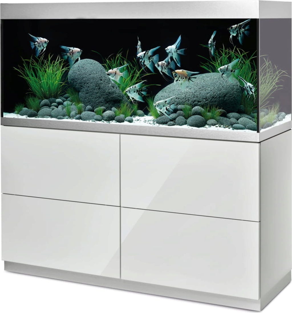 Akvarijska kombinacija HighLine optiwhite 400 v beli barvi znamke Oase poudarja nov dizajn in individualnost. Akvariji in spodnje omarice OASE HighLine so med seboj brezhibno usklajeni in prepričajo z visokokakovostnimi materiali. Z osnovno površino 140 x 50 cm in pravokotnim dizajnom se optimalno prilega vsakemu bivalnemu okolju, poleg tega pa je dizajn zelo praktičen: s suhim jaškom za urejeno vodenje kablov in cevi ter s specifično luknjo v dnu skupaj z enostavno možnostjo priključitve filtra. Suhi jašek zagotavlja dodatne možnosti skrivanja, tehnika pa popolnoma izgine. Spodnja omarica je opremljena z nastavljivimi nogicami za varno in stabilno postavitev brez majanja.