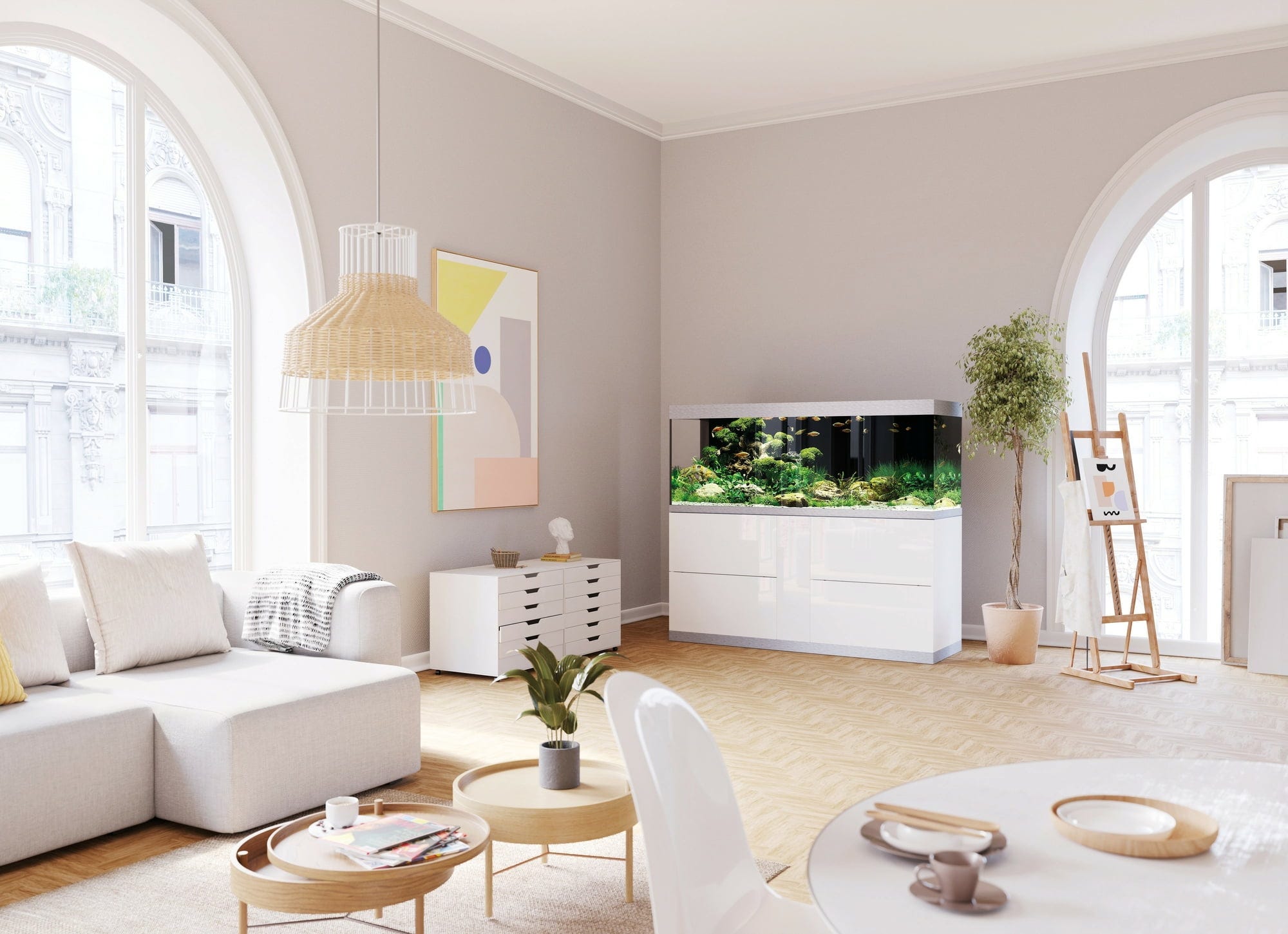 Akvarijska kombinacija HighLine optiwhite 600 v beli barvi znamke Oase poudarja nov dizajn in individualnost. Akvariji in spodnje omarice OASE HighLine so med seboj brezhibno usklajeni in prepričajo z visokokakovostnimi materiali. Z osnovno površino 160 x 60 cm in pravokotnim dizajnom se optimalno prilega vsakemu bivalnemu okolju, poleg tega pa je dizajn zelo praktičen: s suhim jaškom za urejeno vodenje kablov in cevi ter s specifično luknjo v dnu skupaj z enostavno možnostjo priključitve filtra. Suhi jašek zagotavlja dodatne možnosti skrivanja, tehnika pa popolnoma izgine. Spodnja omarica je opremljena z nastavljivimi nogicami za varno in stabilno postavitev brez majanja.