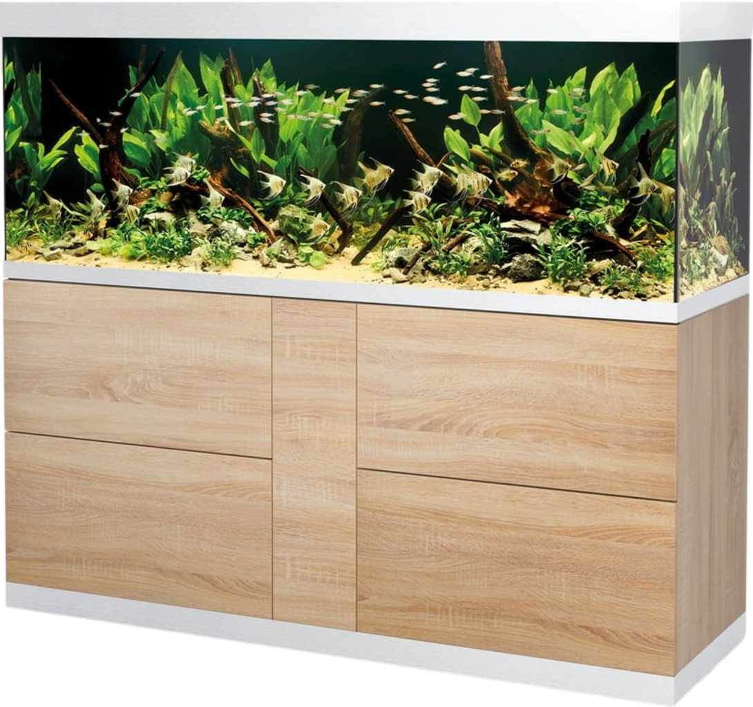 Akvarijska kombinacija HighLine optiwhite 600 v barvi hrasta znamke Oase poudarja nov dizajn in individualnost. Akvariji in spodnje omarice OASE HighLine so med seboj brezhibno usklajeni in prepričajo z visokokakovostnimi materiali. Z osnovno površino 160 x 60 cm in pravokotnim dizajnom se optimalno prilega vsakemu bivalnemu okolju, poleg tega pa je dizajn zelo praktičen: s suhim jaškom za urejeno vodenje kablov in cevi ter s specifično luknjo v dnu skupaj z enostavno možnostjo priključitve filtra. Suhi jašek zagotavlja dodatne možnosti skrivanja, tehnika pa popolnoma izgine. Spodnja omarica je opremljena z nastavljivimi nogicami za varno in stabilno postavitev brez majanja.