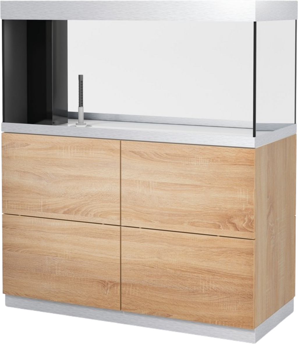 Podomarica brez hrbtne strani je dostopna z obeh strani in ponuja presenetljivo veliko prostora za shranjevanje dodatkov in tehnologije. Zelo priročno: izvlek filtra je mogoče prilagoditi glede na stanje akvarija.