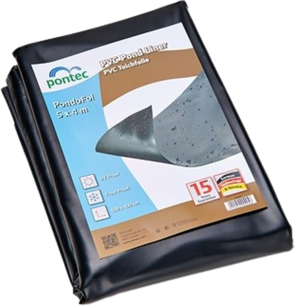 Ta predrezana folija za ribnik ni le robustna, ampak tudi izjemno prilagodljiva! Črni PVC material z debelino 0,5 mm naredi folijo neprozorno in odporno na svetlobo. Hkrati je dovolj fleksibilna, da jo enostavno prilagodite konturam vašega ribnika. Spremenljivi vremenski pogoji ali pritisk korenin ji ne morejo škodovati.