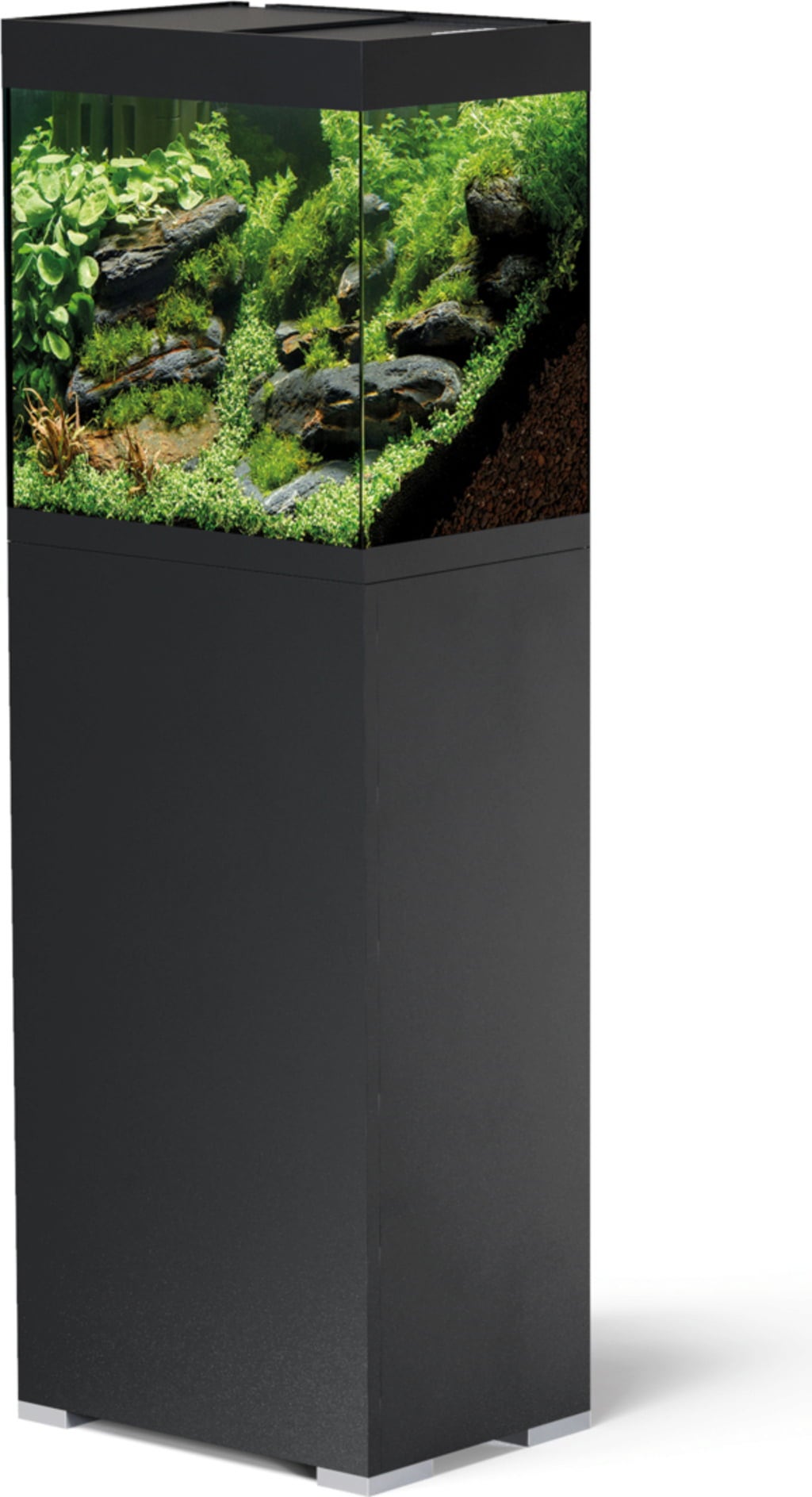 Akvarij StyleLine je posebej prilagojen potrebam optimalne reje živali. Stekleni elementi so sestavljeni iz kakovostno obdelanega varnostnega float stekla z brušenimi steklenimi robovi. Paneli na vrhu in na dnu polepšajo videz in moteči vodni robovi ali različne plasti zemlje niso vidne.
