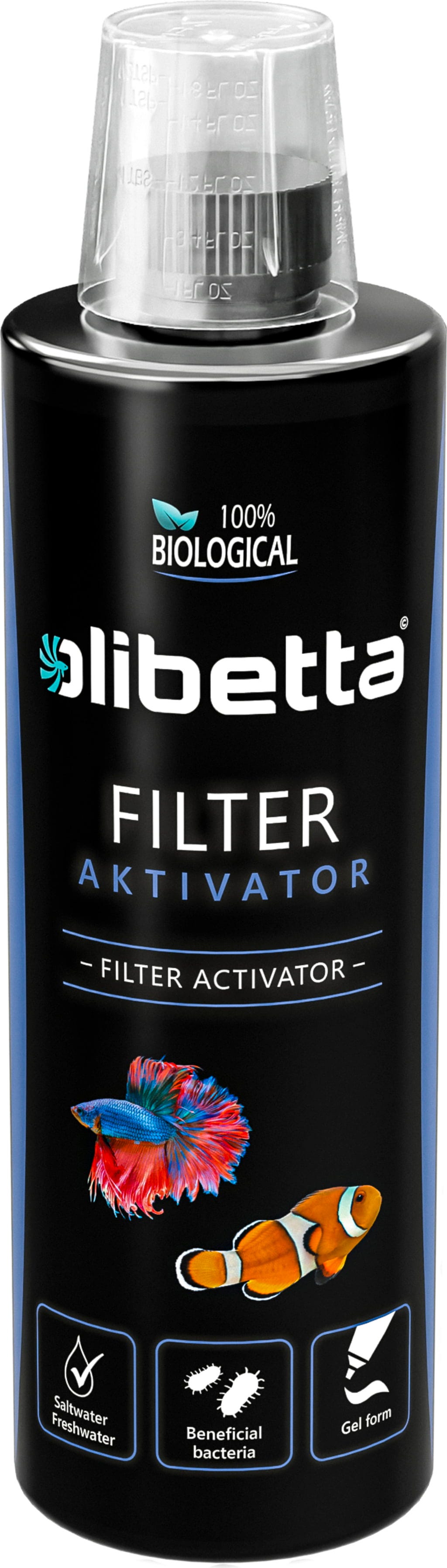 Filter Activator Olibetta je bogat s koristnimi bakterijami, ki zagotavljajo takojšen biološki zagon in izboljšajo delovanje filtrov in filtrirnih medijev. Izdelek je v obliki gela, ki je namenjen ciljni uporabi. Pri ščetkanju ustreznega filtrirnega medija koristni mikroorganizmi najdejo optimalno območje za razgradnjo organskega onesnaženja. Ker aktivator filtra že vsebuje film bakterij, postanejo filtri takoj po premazu biološko aktivni. Ne le, da se bistveno podaljša življenjska doba, ampak je tudi napor čiščenja zmanjšan.
