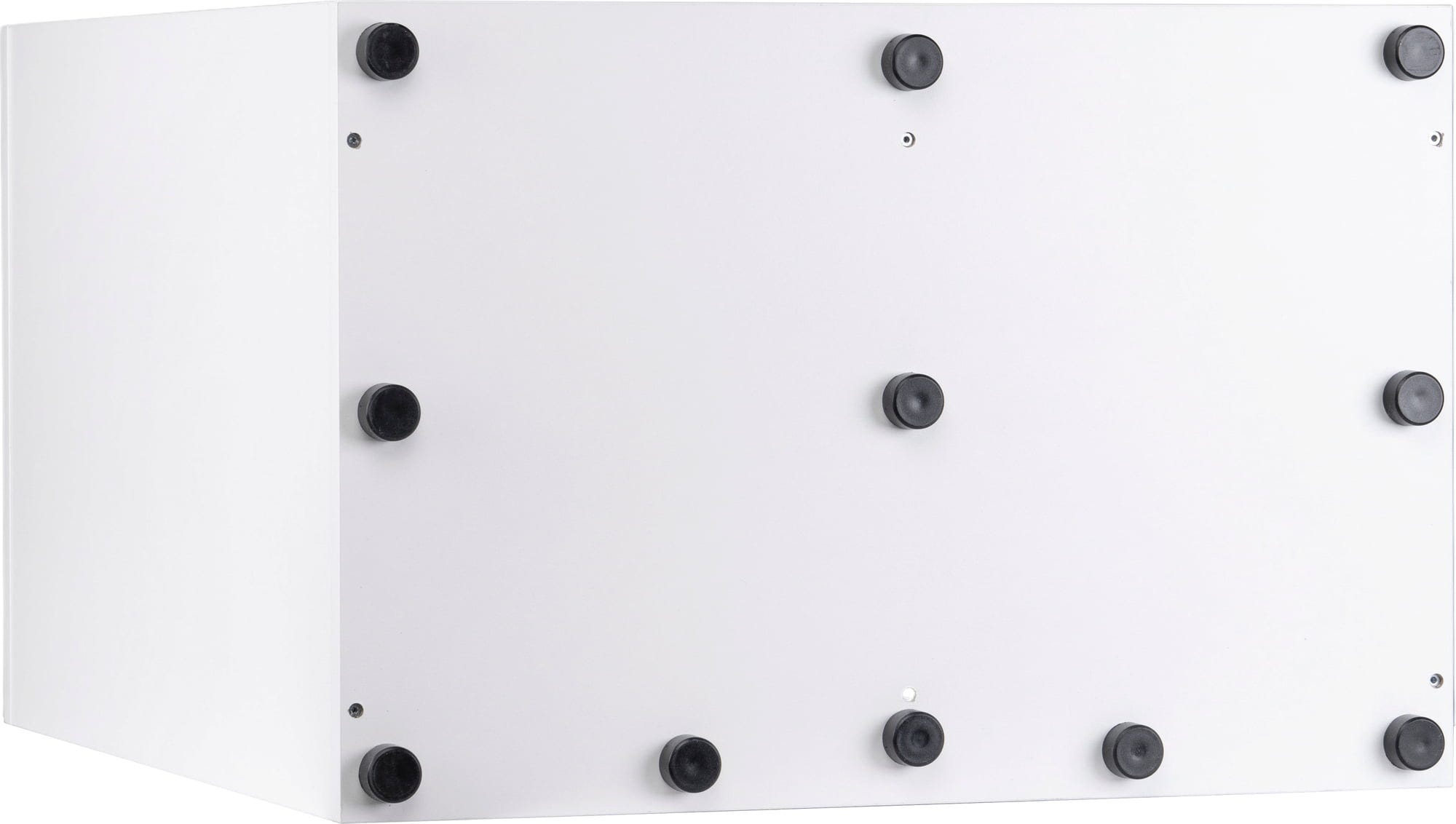 Visokokakovostno izdelana omarica iz MDF plošče ima nogice, ki zagotavljajo stabilno postavitev. Delno odprta zadnja stran omogoča nevidno vodenje cevi in kablov v notranjost omarice, kjer najdete dovolj prostora za namestitev večje tehnike. Na voljo je tudi prostor za shranjevanje hrane in pripomočkov za nego. Dvoje krilnih vrat s tihim delovanjem (funkcija Push-to-Open) in gibljivimi tečaji dopolnjuje eleganten videz celotne kombinacije. Poudarek vsakega bivalnega prostora!
