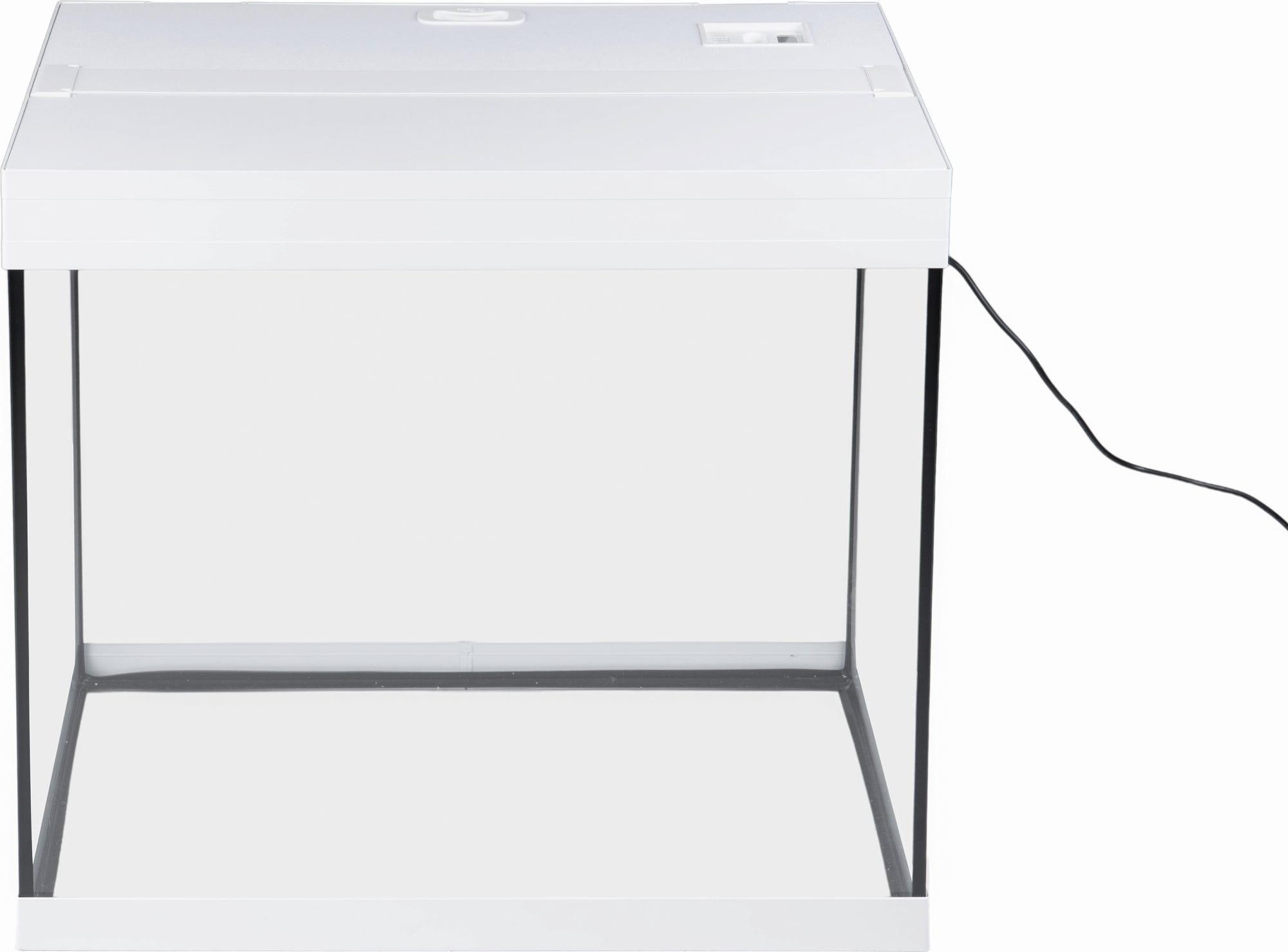 Ta komplet vsebuje vse, kar potrebujete za takojšen začetek oblikovanja svojega podvodnega vrta: visokokakovostno obdelano steklo akvarija ima robusten aluminijast profil. Dvodelni pokrov omogoča urejeno vodenje kablov in cevi, hiter dostop v akvarij, na primer za čiščenje ali hranjenje, pa je mogoč brez truda. Tehnična oprema (podrobnosti glej spodaj) vključuje osvetlitev, filter s črpalko in grelnik.