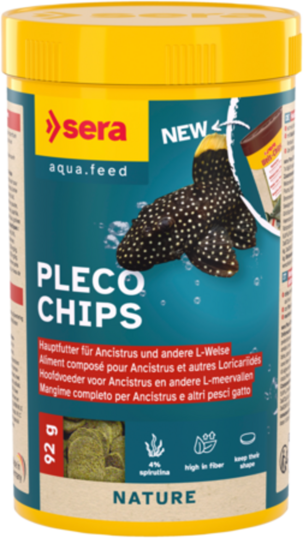 Sera Pleco Chips je osnovna hrana v obliki čipsa, namenjena strgajočim in sesajočim talnim ribam, kot so ancistrusi in L-somi v sladkovodnih akvarijih. Na voljo je v različnih pakiranjih.