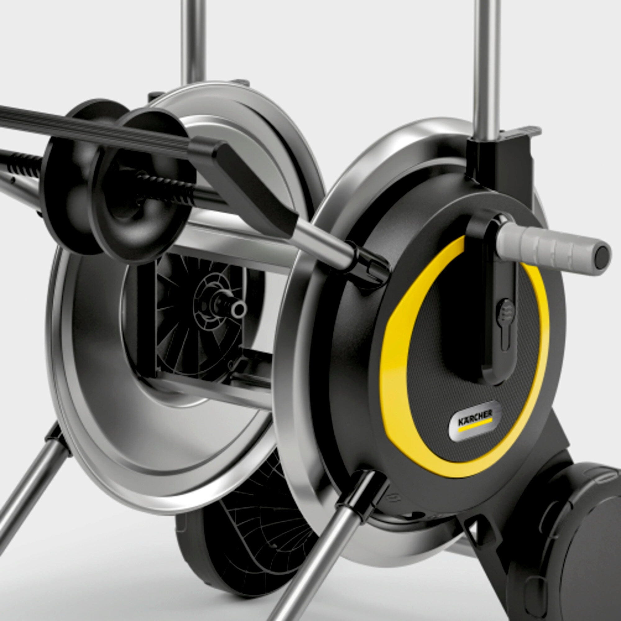 Kot navijalnik cevi za vrt sistem deluje ročno: cev se po uporabi s pomočjo ročice navije na boben in shrani na način, ki zavzame malo prostora. Teleskopski ročaj je mogoče s hitrimi zapenjali nastaviti na želeno višino ali ga za shranjevanje popolnoma zložiti. Tako je ročni navijalnik cevi primeren za različne namene, kot so zalivanje travnatih površin, zalivanje gredic ali priklop razpršilnika za travo. Komplet vsebuje 20 m dolgo cev in pripadajočo opremo ter je takoj pripravljen za uporabo kot navijalnik cevi za zalivanje vrta.