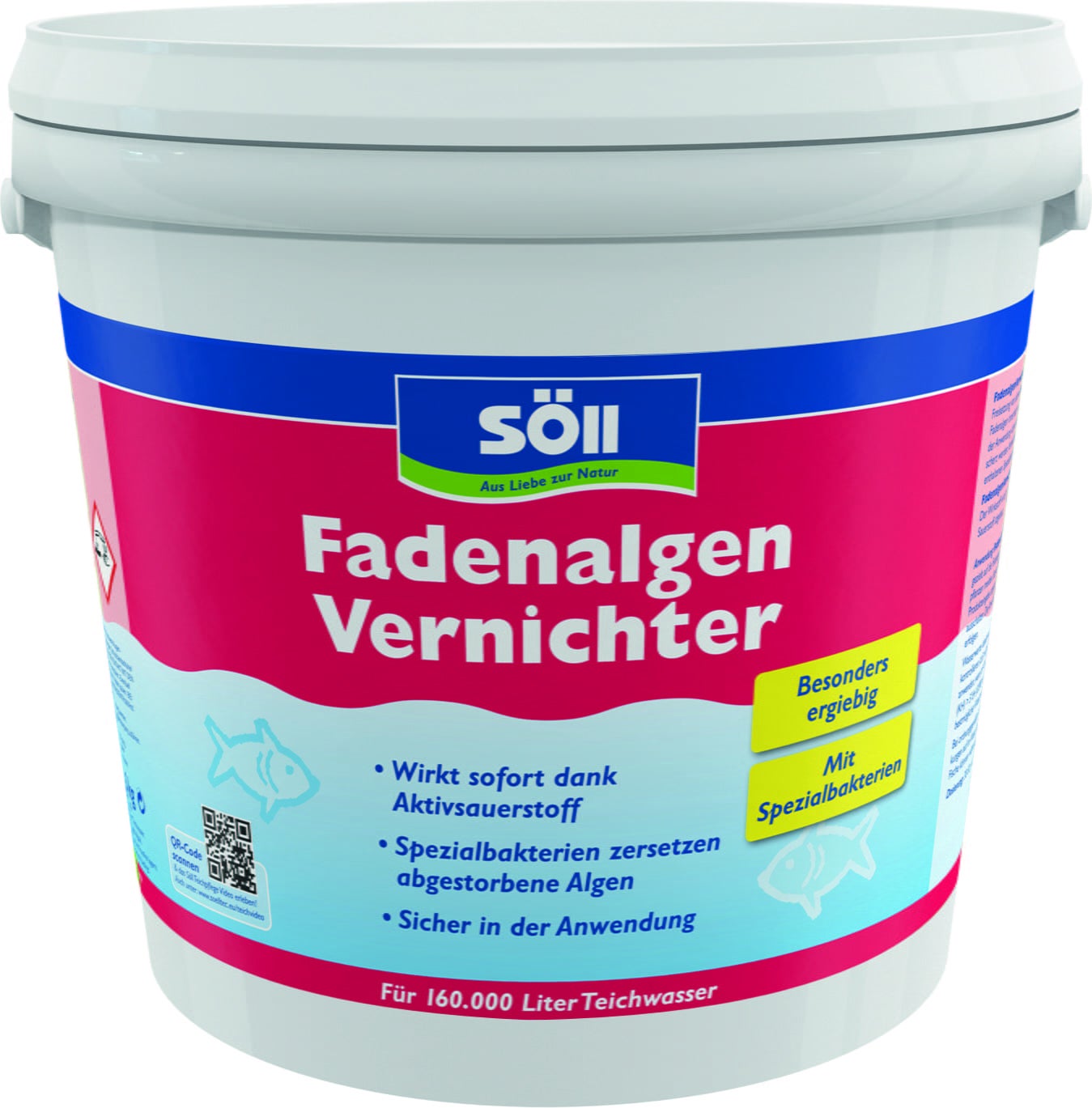 Nitasti uničevalec alg Söll je brezbarven in učinkovit pripravek, ki stabilizira rast alg. V 24 urah sprosti aktivni kisik in uniči odvečne alge. »Uničene« alge lahko kmalu zatem odstranimo z mrežico. Ostalo naredijo posebne bakterije, ki jih vsebuje izdelek: pospešijo proces razgradnje odmrlih alg. Uničevalec nitastih alg v nekaj urah razpade na vodo in kisik.