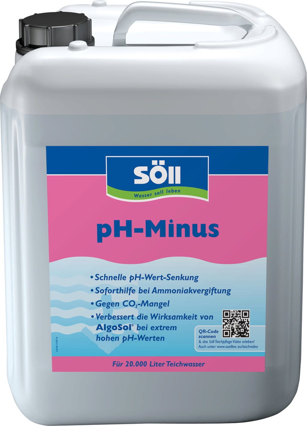 Ko pH-vrednost vašega ribnika preseže 8,5, vam pH-Minus znamke Söll nudi hitro in učinkovito rešitev za takojšnjo nevtralizacijo nevarnega amonijaka. Hkrati pomaga odpraviti pomanjkanje CO₂ pri vodnih rastlinah, da lahko znova optimalno vsrkavajo hranila in bujno rastejo.