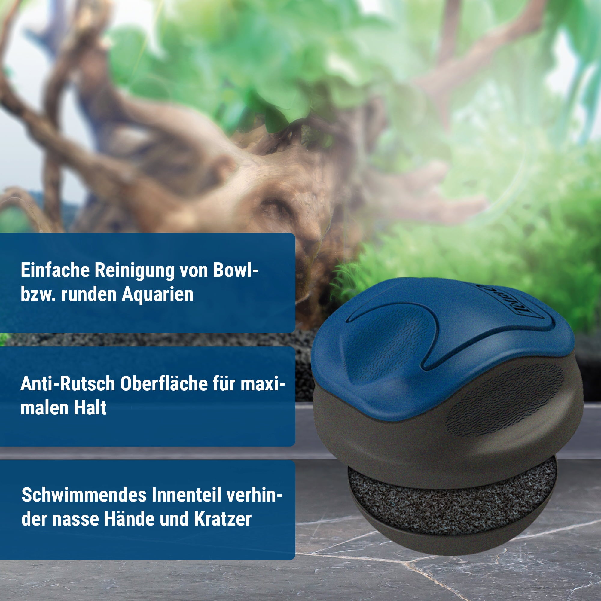 Oblika magnetnega čistilca je primerna za ravno površino ali Magnet Cleaner Bowl za čiščenje okrogle akvarijske površine je popolnoma primerna. Vsestranski čistilec omogoča še posebej enostavno čiščenje vogalov akvarija, ki so sicer težko dosegljivi. Protizdrsna površina zagotavlja enostavno čiščenje, ergonomska oblika pa zagotavlja, da se magnetni čistilec popolnoma prilega roki. Poleg tega lebdeči notranji del preprečuje mokre roke ali praske od kamnov, ki so se usedli med steklom in notranjim delom od tal, v primeru izgube stika.
