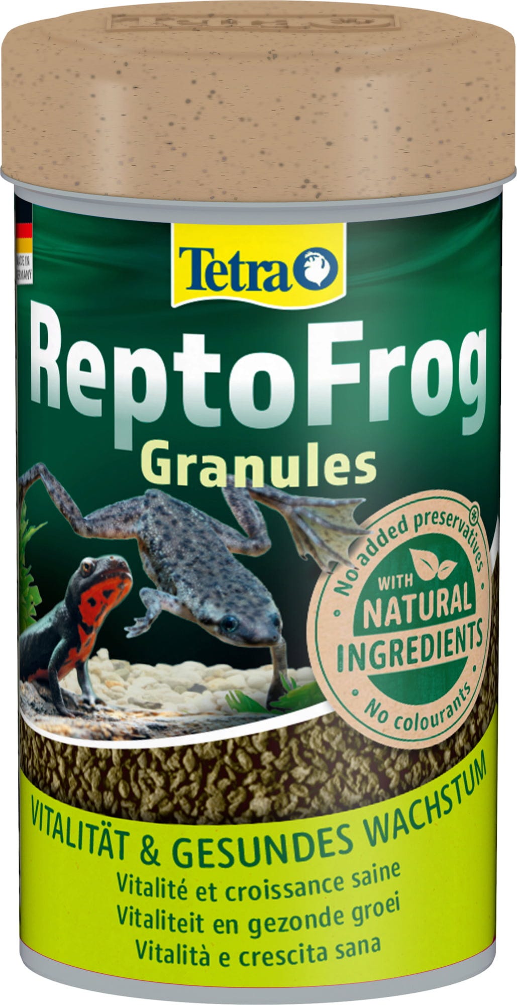 Tetra ReptoFrog Granules je osnovna hrana za vodne žabe in vodne tritone. Zrnca, ki jih je enostavno pogoltniti, so dober vir beljakovin in vsebujejo veliko beljakovin za optimalno rast. Zaradi svoje majhnosti je idealen tudi za majhne dvoživke
