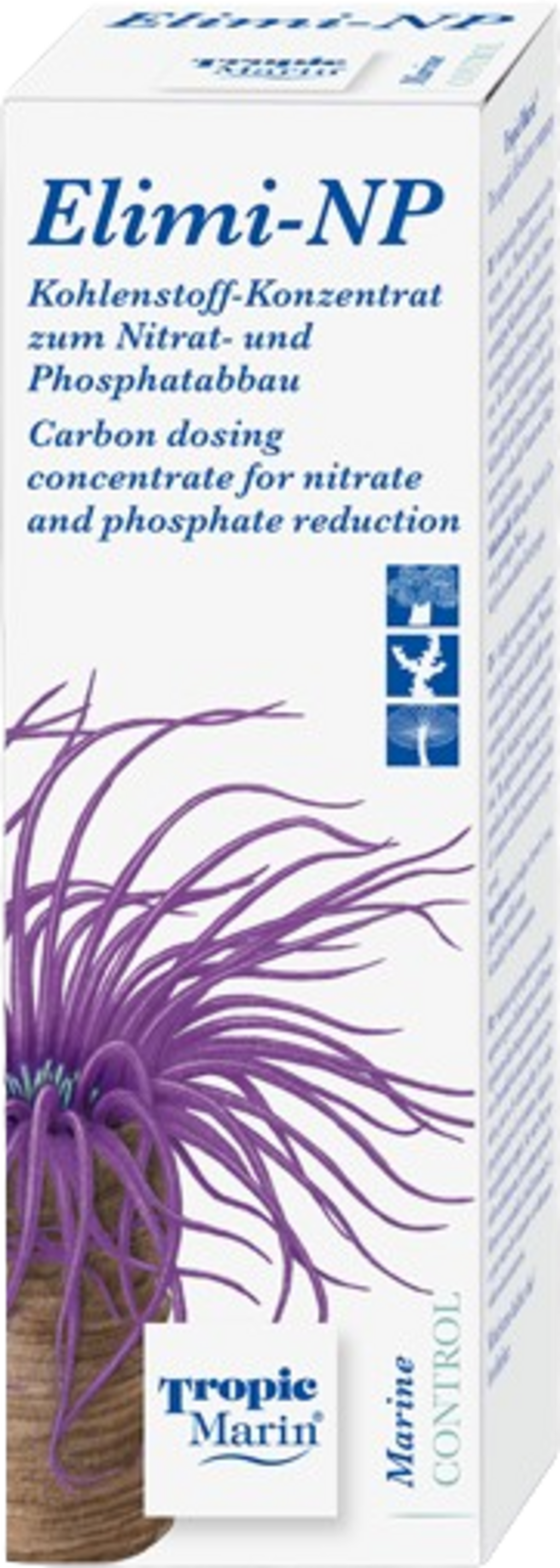 Tropic Marin Elimi-NP je koncentrat ogljika, posebej razvit za morske akvarije z reaktorjem za korale. Tekoča raztopina vsebuje organski ogljik, ki znižuje koncentracije nitratov in fosfatov ter popravlja razmerje nitrat-fosfat v vodi. Elimi-NP je primeren za akvarije s morskimi ribami, mehkimi koralami, LPS, SPS, drugimi hranilniki s filtri in raki.